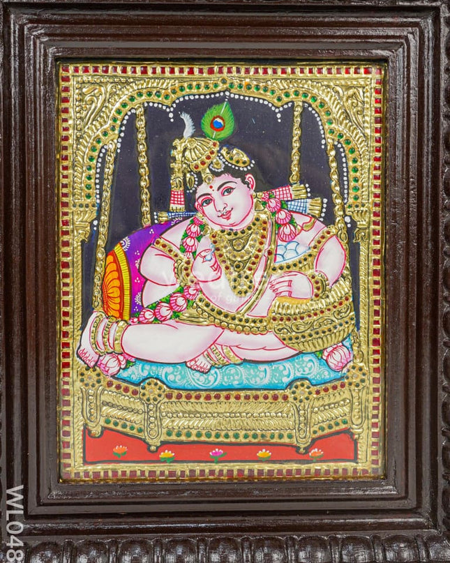 Tanjore Painting - Jhoola Krishna - Flat (Gold Foil) - 10x8 inch - WL0485