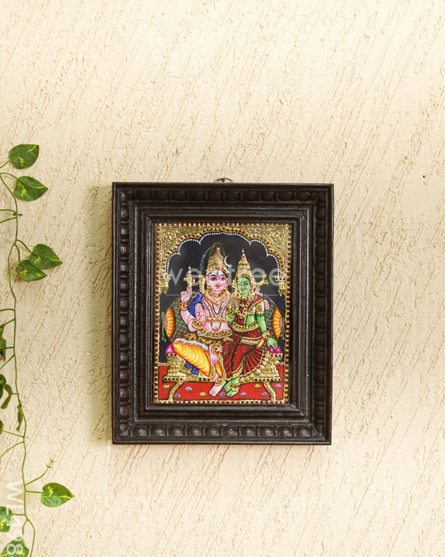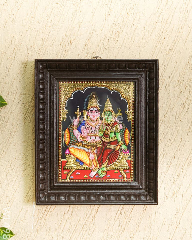 Tanjore Painting (Reverse Chettinad Frame) - Shivan-Parvati - Flat (Gold Foil) - 10x8 inch - WL3973