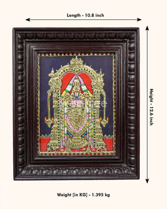 Tanjore Painting (Chettinad Frame) - Tirupathi Balaji - Flat (Gold Foil) - 10x8 inch - WL3969
