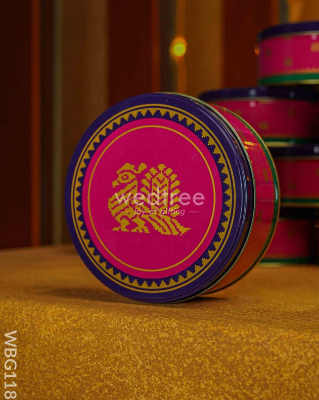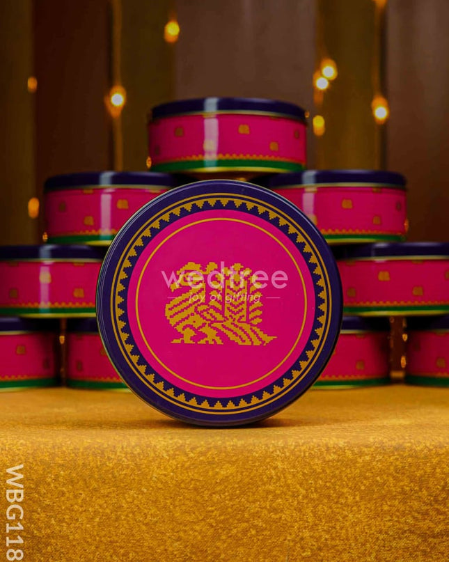 German Silver 2-Cup Kumkum Holder with Meenakari Prints - WBG0076