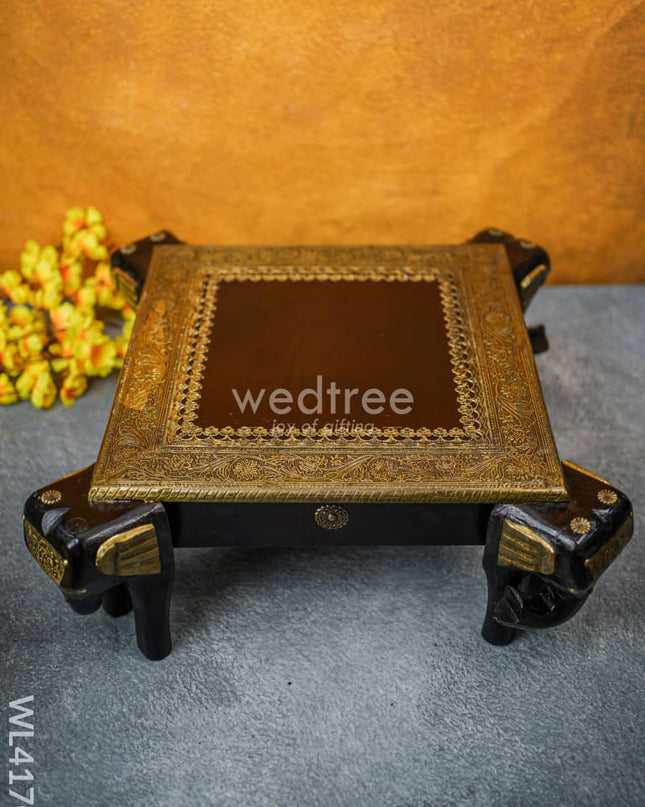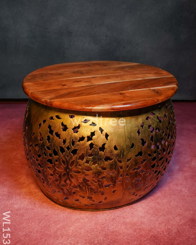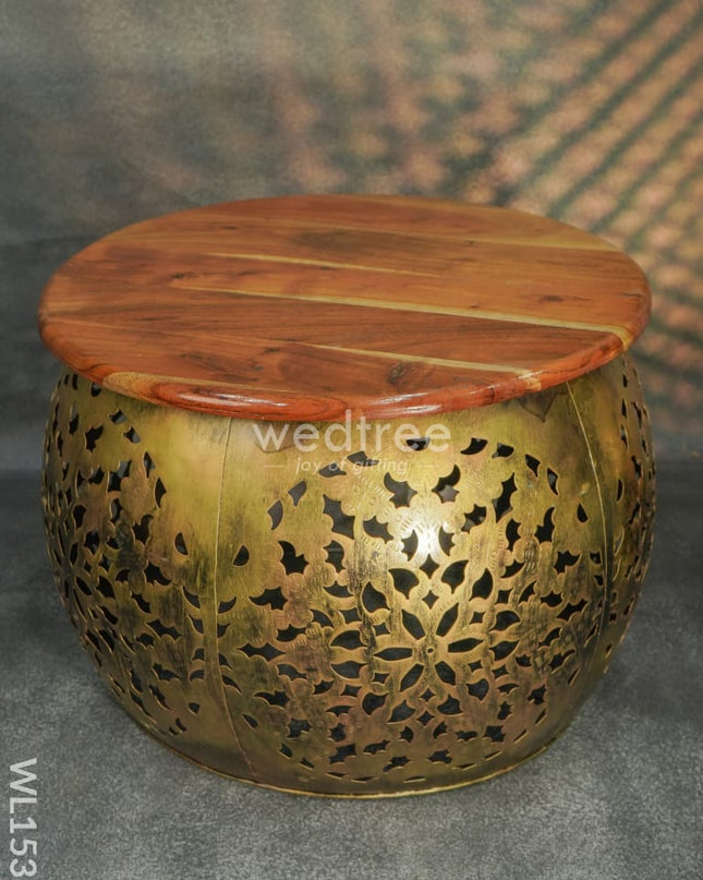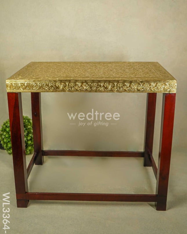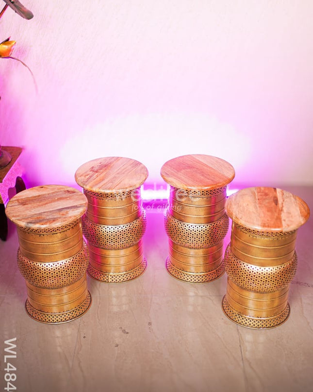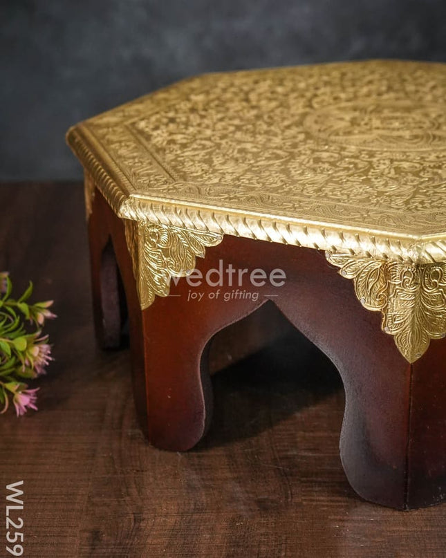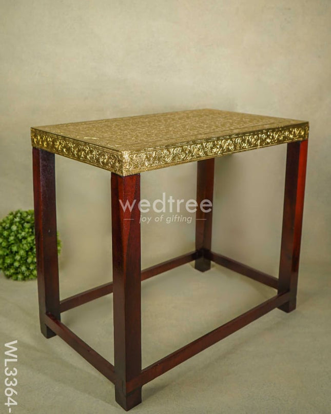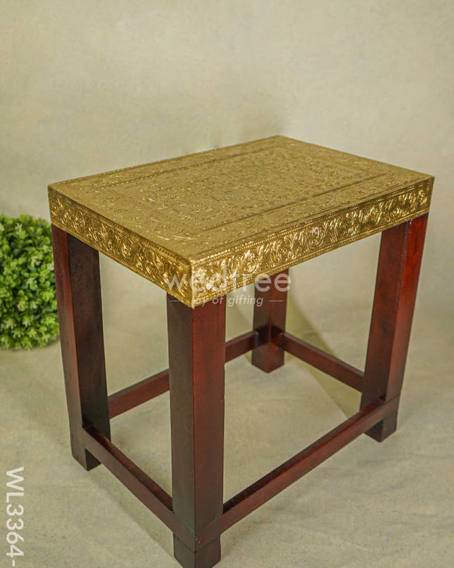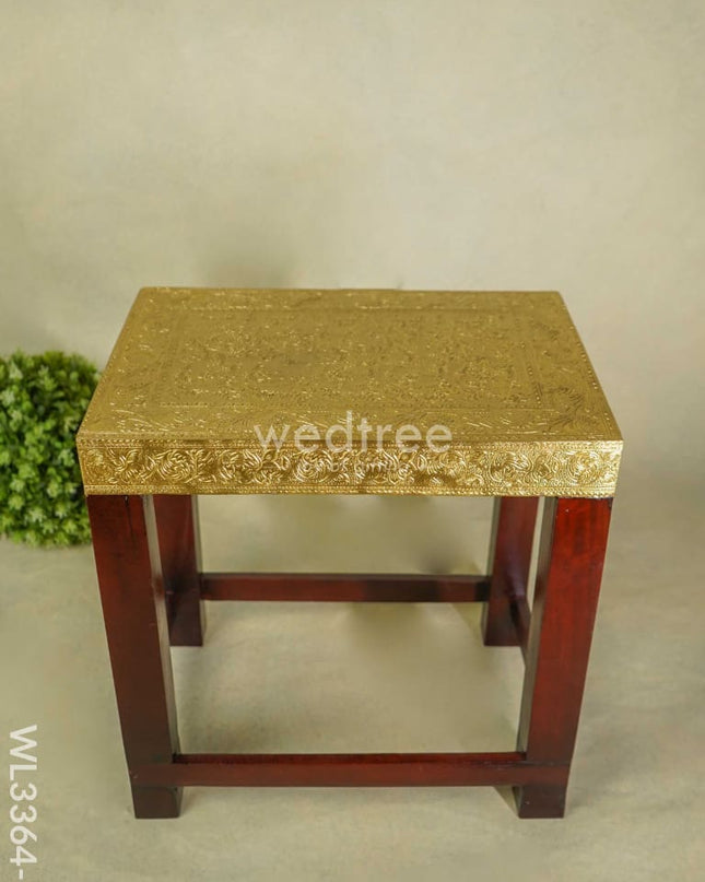 Wooden Stool with Brass Finish - 14 inch - WL2594