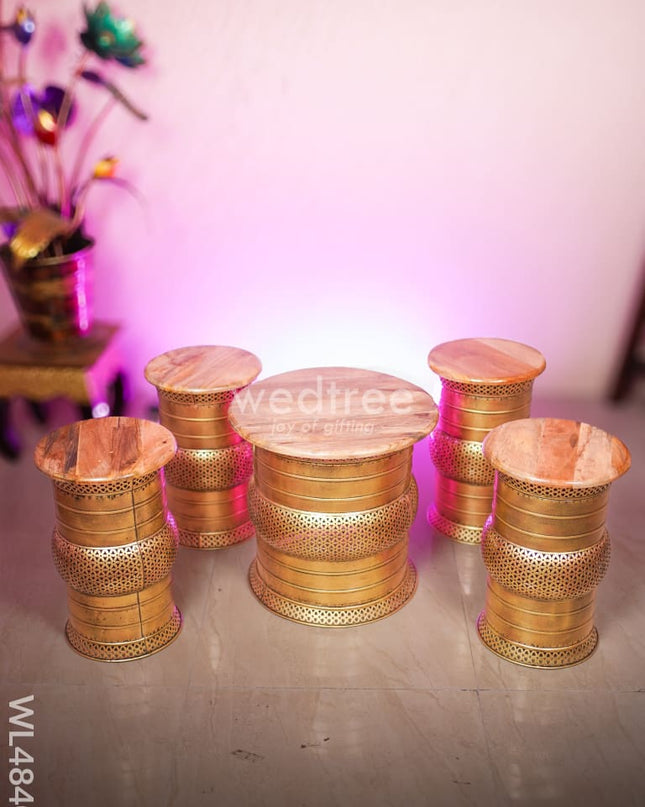 Coffee centre table with 4 side stools (Hand painted with Jhaali cutting) - Copper - WL0295-3