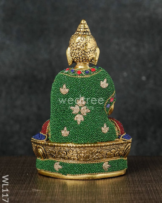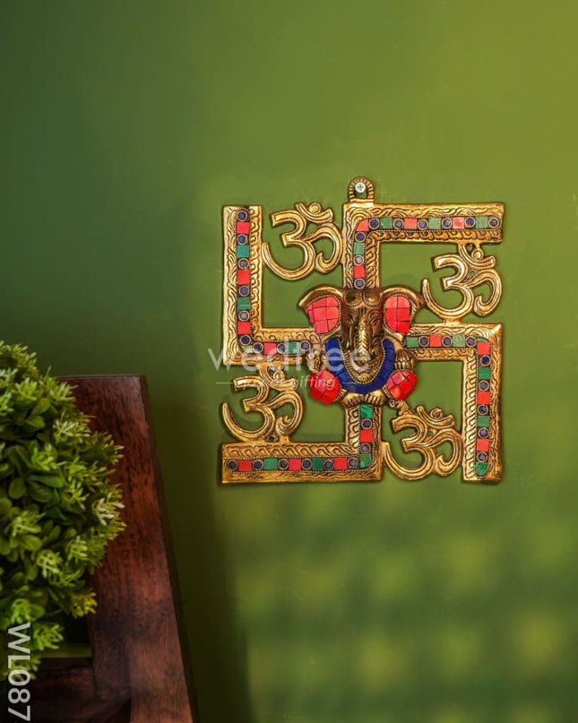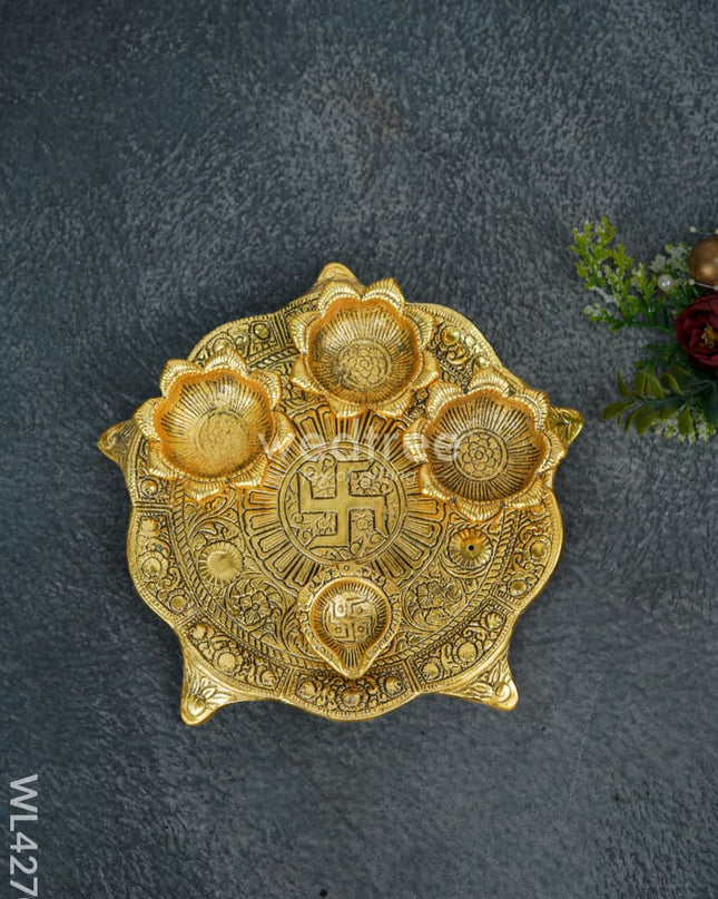 White Metal Swastik Shape Diya - Green - WL5549-2