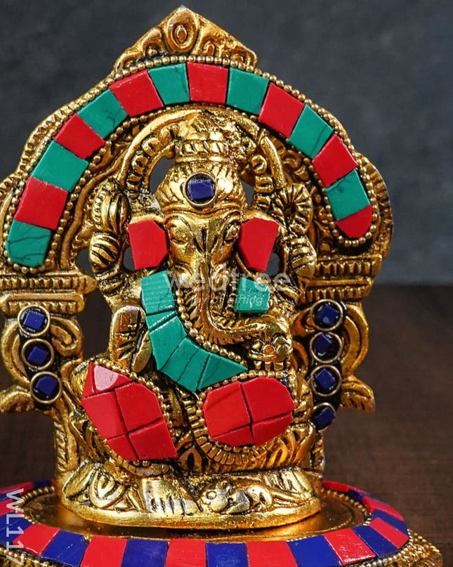 White Metal Lord Ganesha on Designer Base - WL5554-1