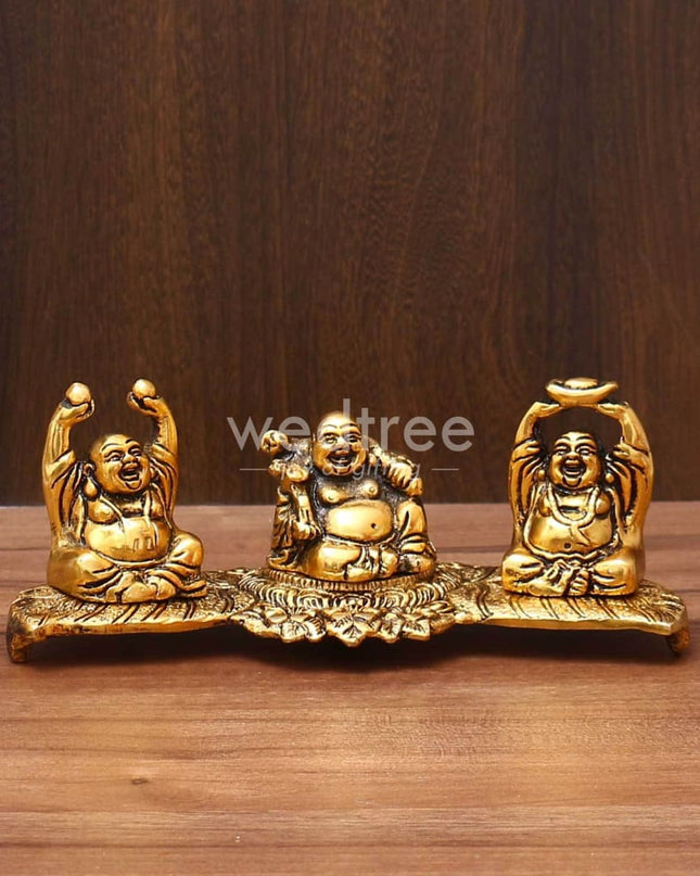 White Metal Laughing Buddha gold Finish - W3596