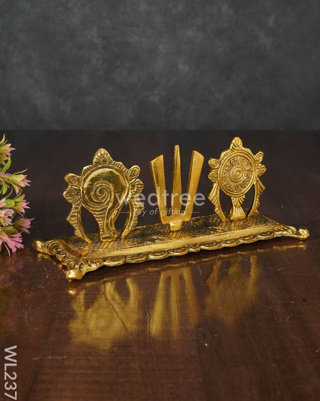 White Metal Shankh Chakra Tilak - 5 inch - Silver - WL5191-2