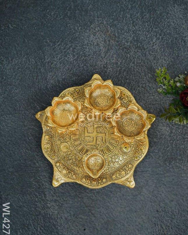 White Metal Floral Diya - Beige - WL5551-2