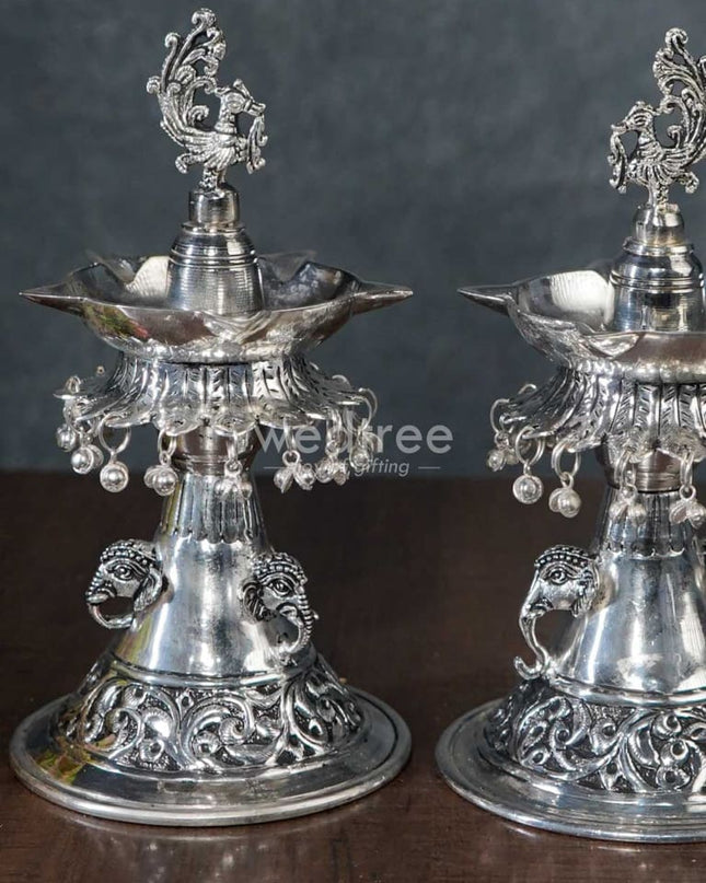German Silver Elephant Peacock Kuthu vilaku - 40 inch - WL4333