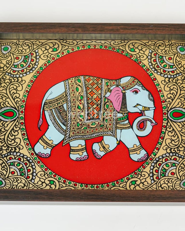 Gift Hamper - Meenakari Tray with Lakshmi Idol, Foil Card and Flower Diya - WMH0017