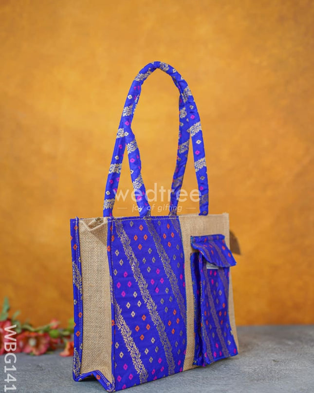 Jute Bag with Raw Silk Fabric & Velcro - W2151