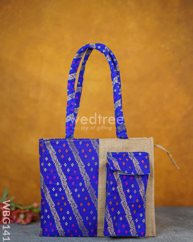 Jute Bag with Zari Lace Work - 9 inch - WBG0848
