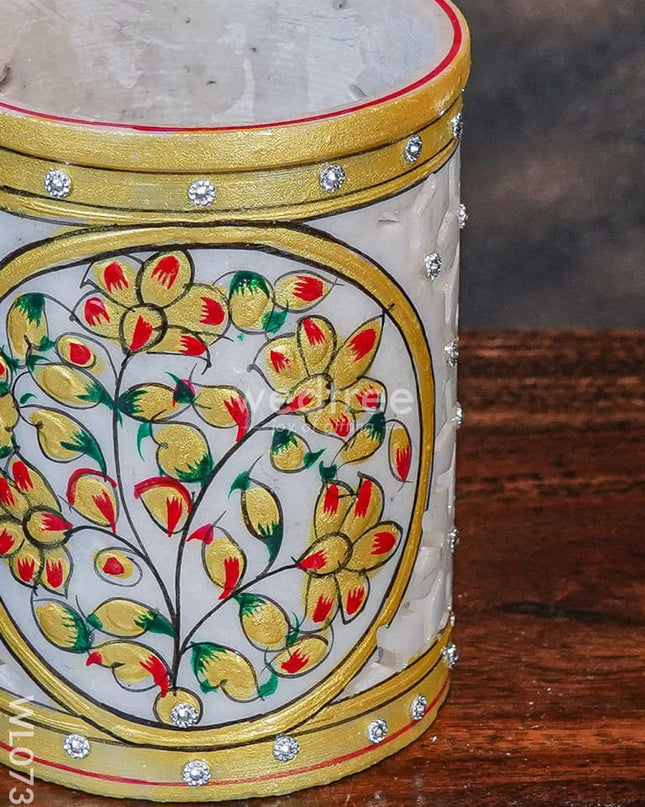 Marble hand painted kum kum box - WL0832