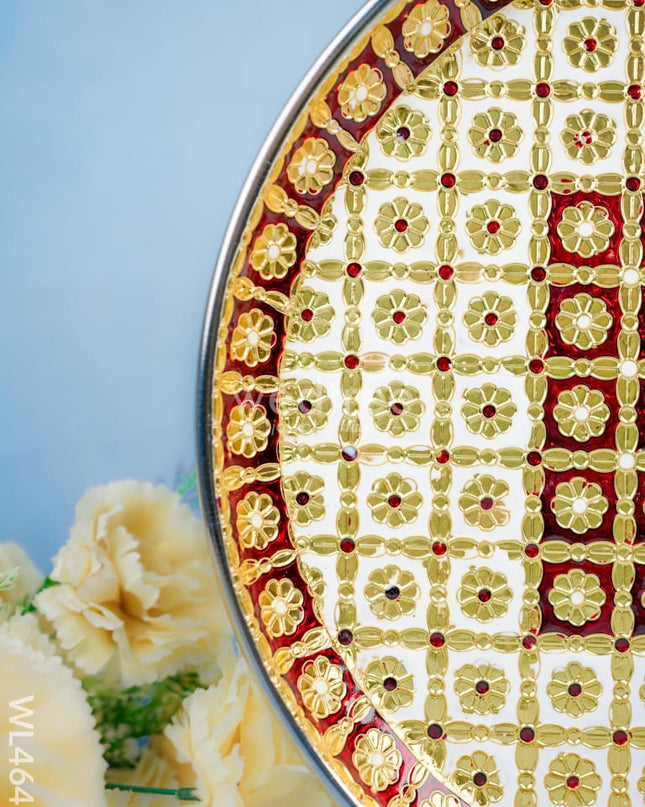 Meenakari Thambaalam Plate - 16 inch - Red - WL5049-2