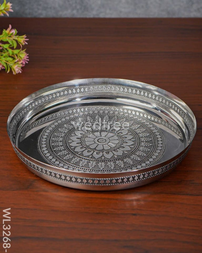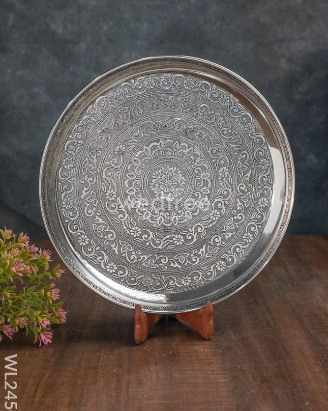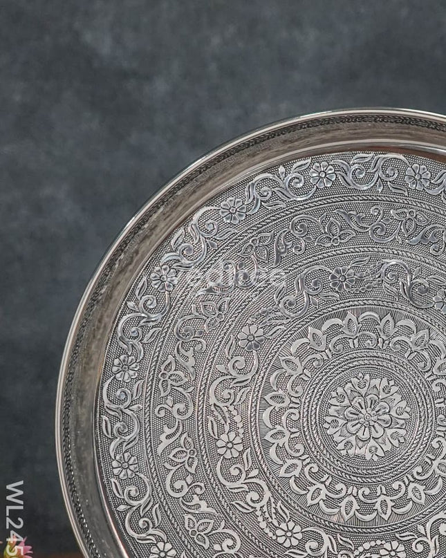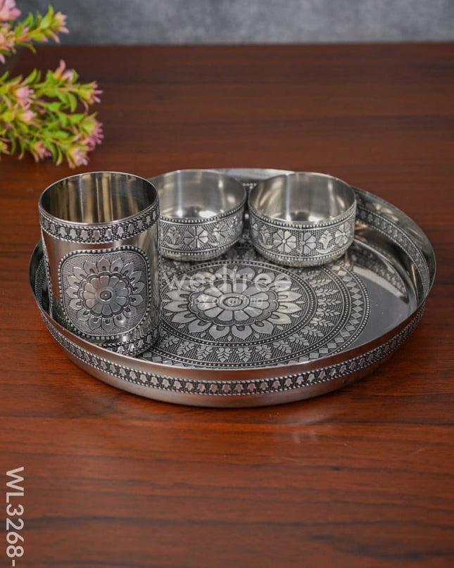 Silver Oxidised Thali Set - 9.5 inches - WL3268-1