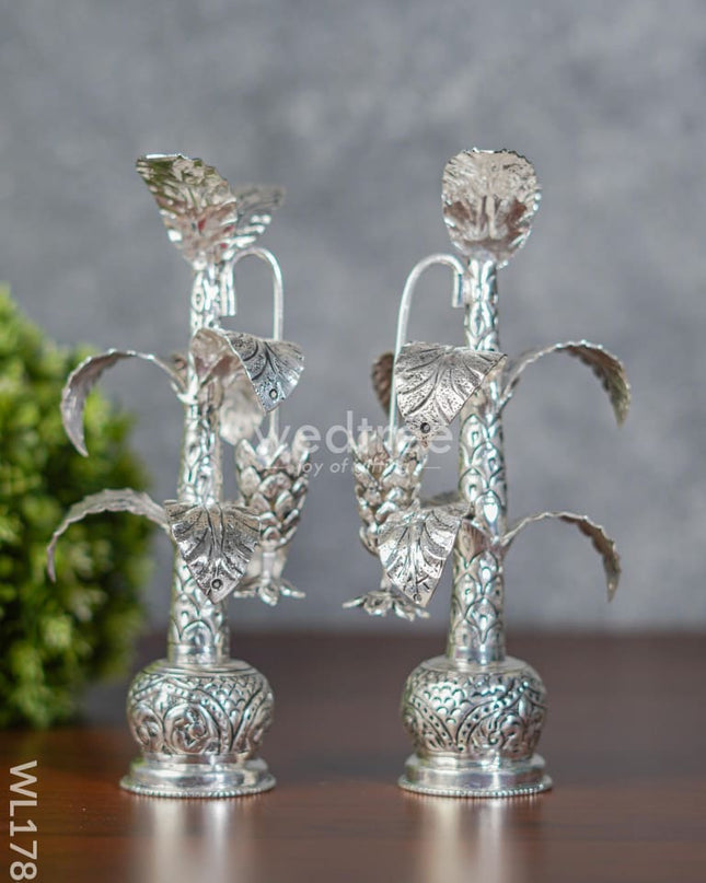 German Silver Peacock Stand Urli - 8 inch - WL2730