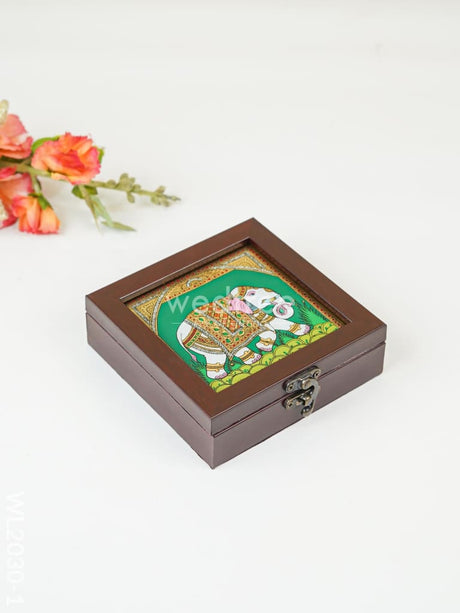 Handpainted Wooden Elephant Storage Box - 7 inch - WL5175
