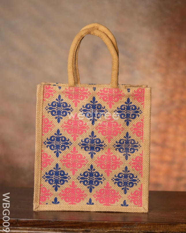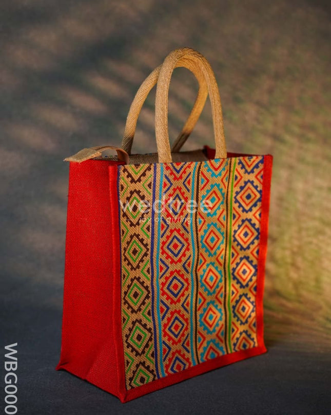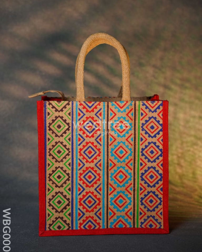 Jute Bag with Multicolored Diamond Design - WBG0143