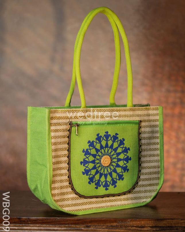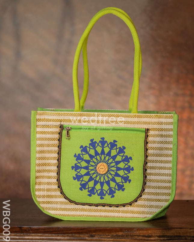 Warli Printed Jute Bag with Horizontal Stripes - WBG0090