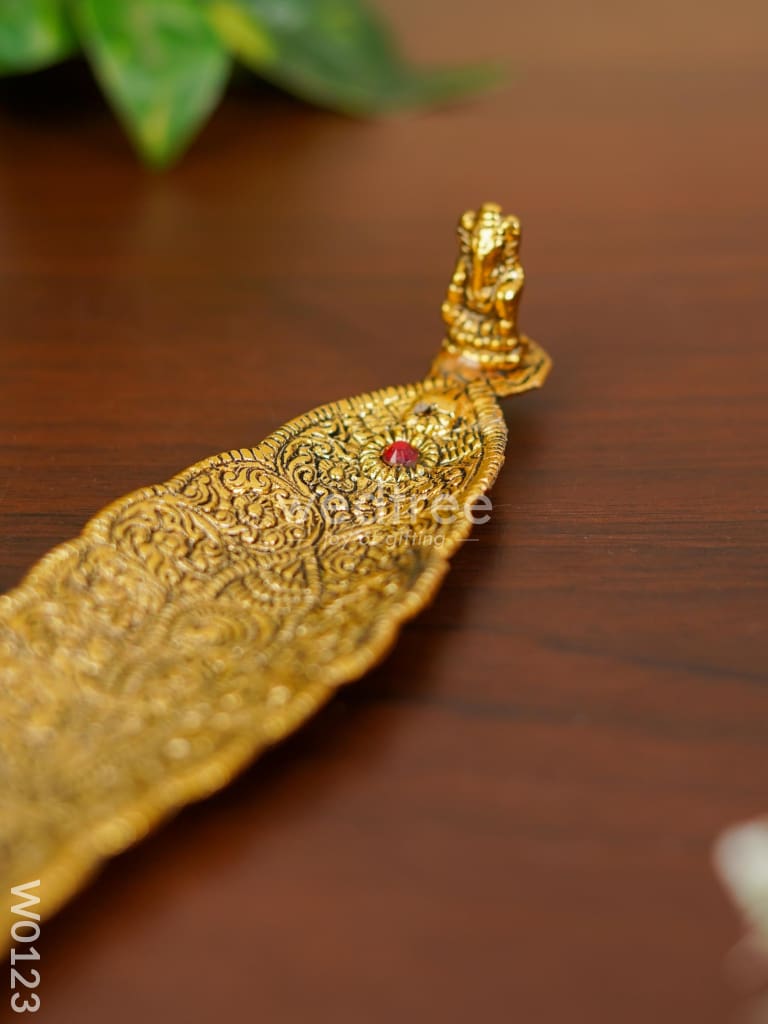 Leaf Agarbathi Stand Gold Ganesha - W0123