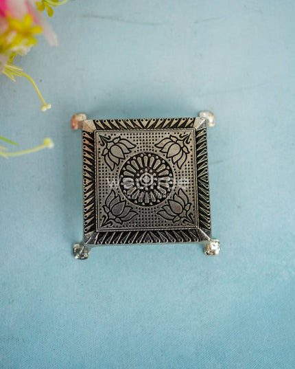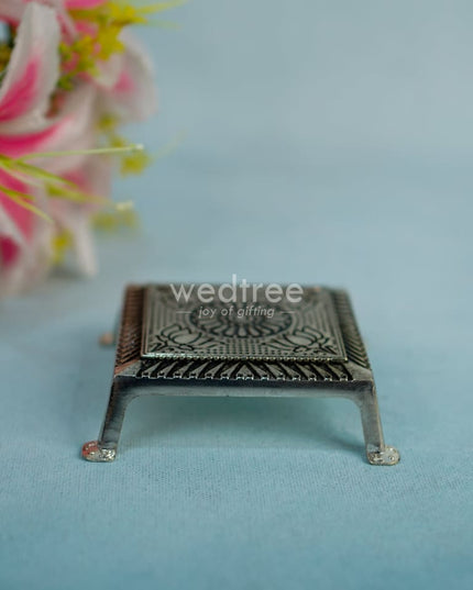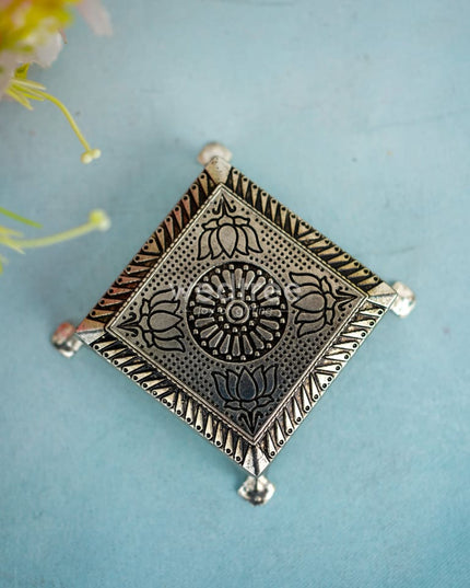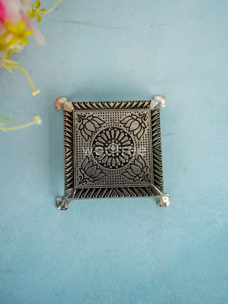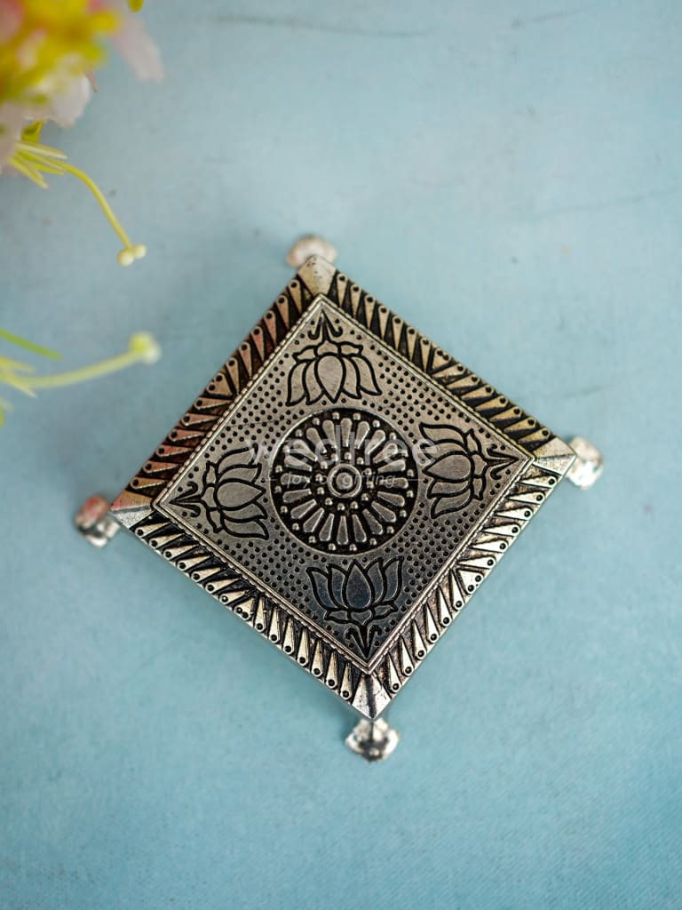 - It's adorned with intricate Lotus carvings and given a silver oxidised finish.