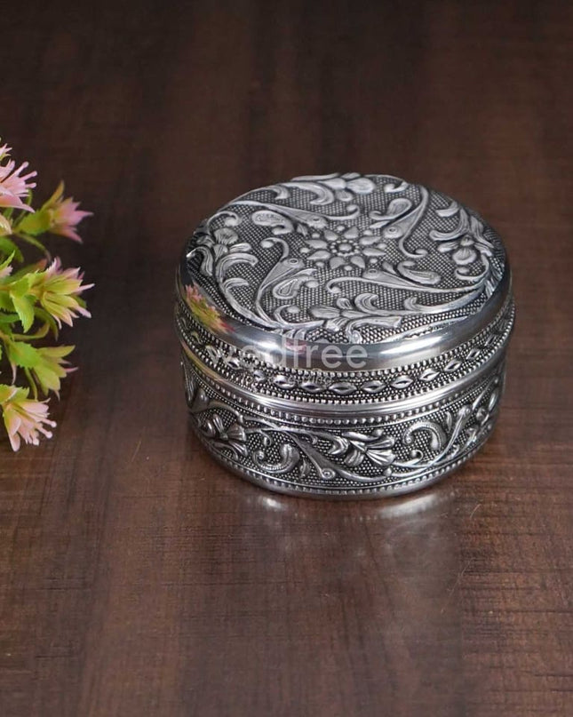 Gold White Oxidised Poori Box - 5 inches - WBG0647