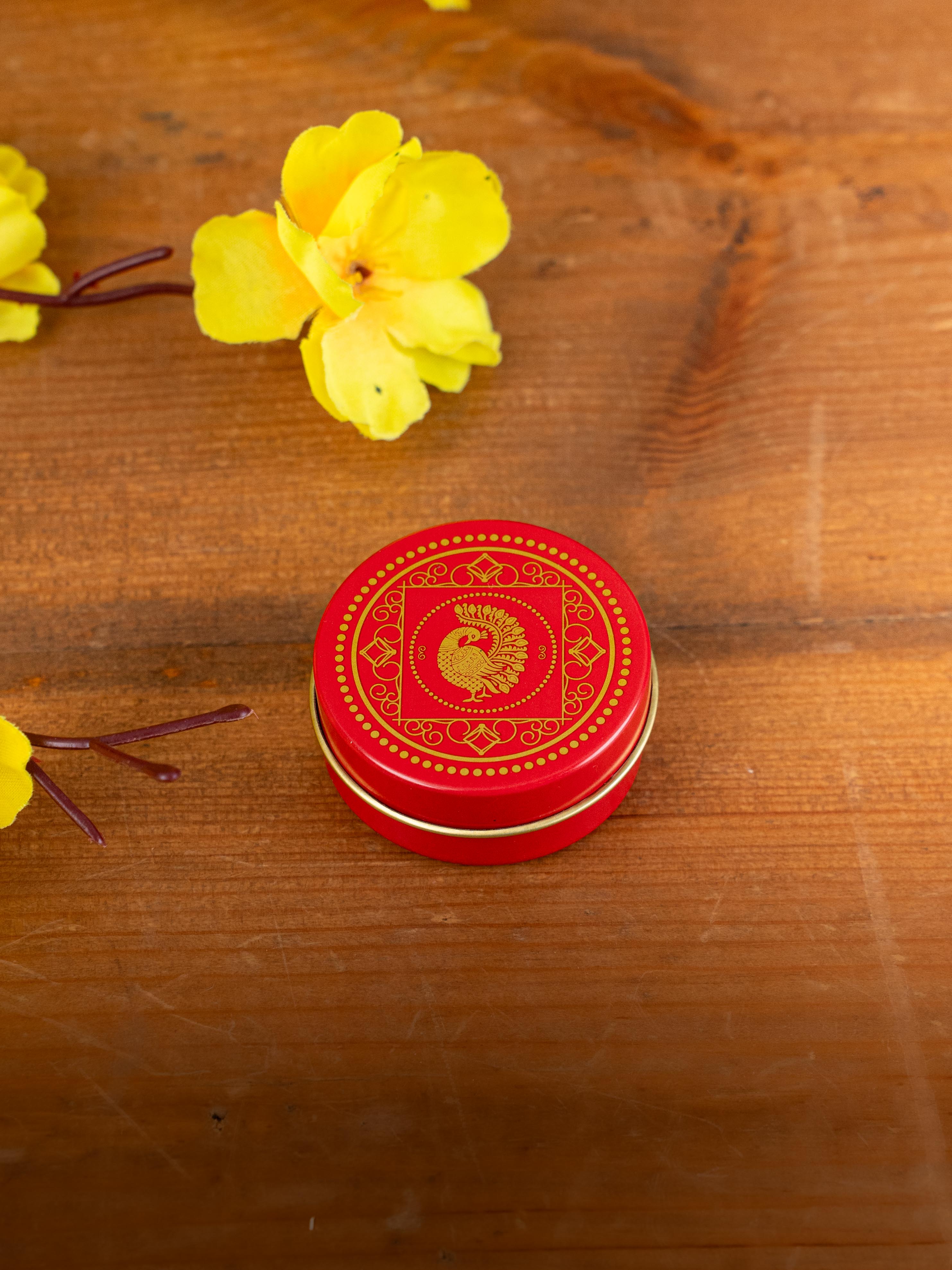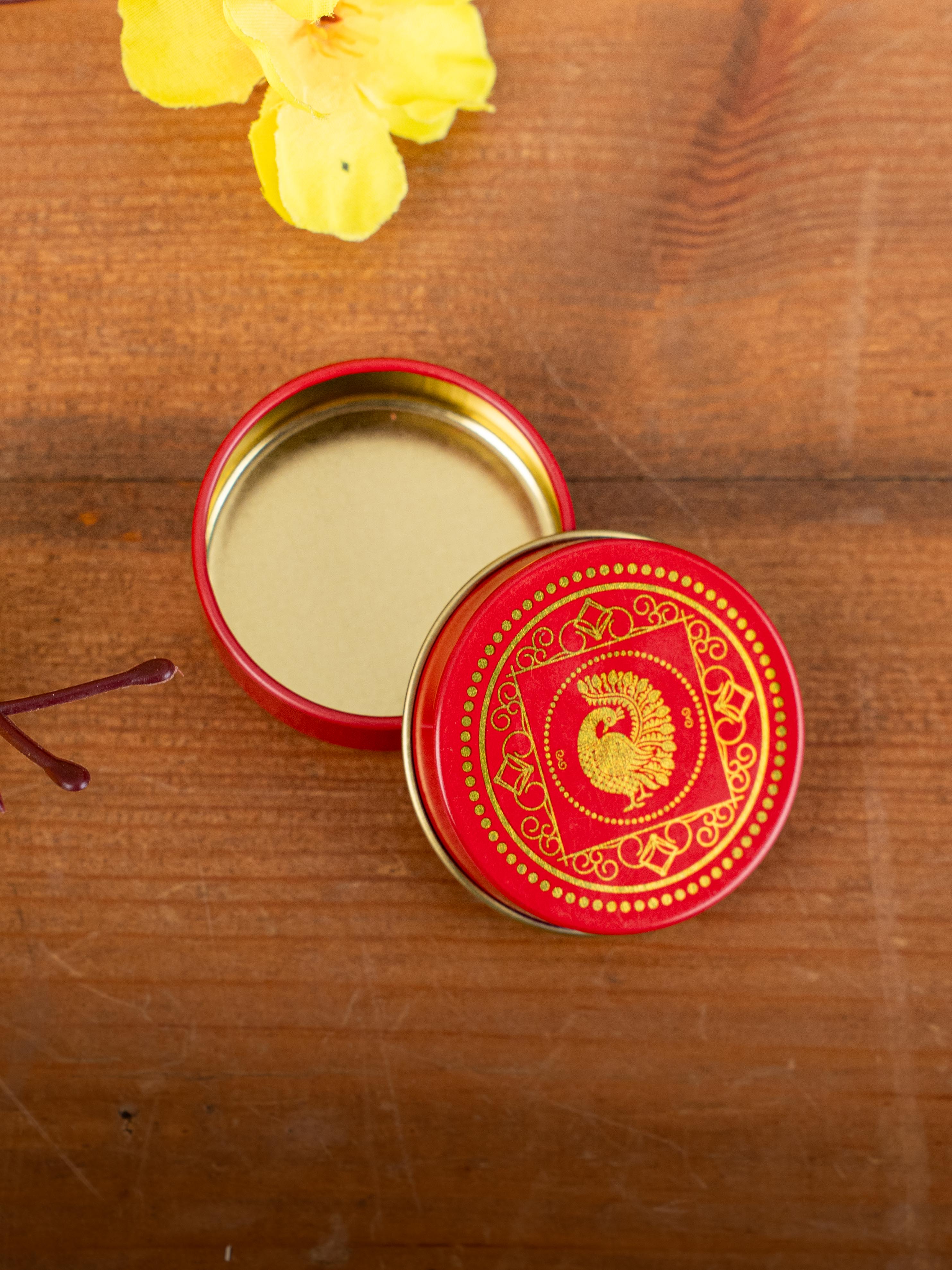 - Elegance to your Storage or Gifting with this Decorative Round Tin Jar featuring a Beautiful Golden Annapakshi Design.