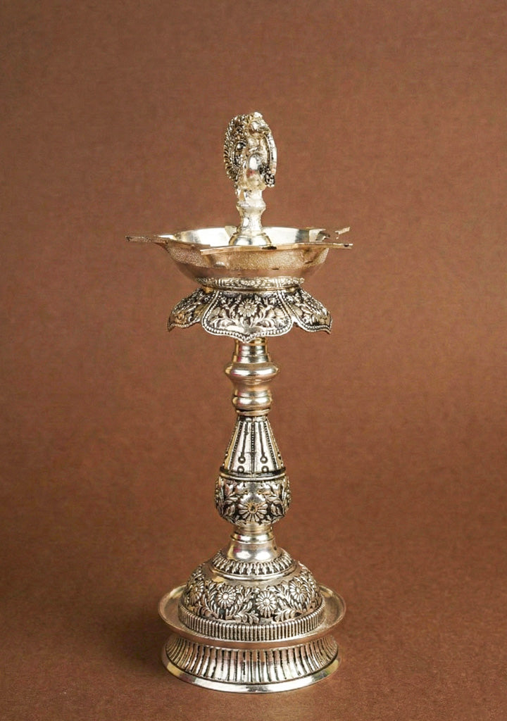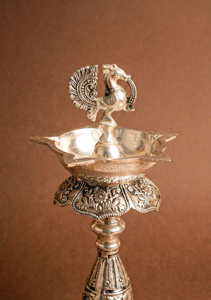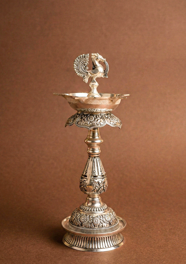 - Annapakshi Kuthu Vilakku with Velvet Box - Traditional South Indian Brass Vilaku.