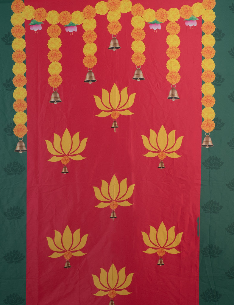 - On display is a satin backdrop - a lovely addition to your puja decor!
