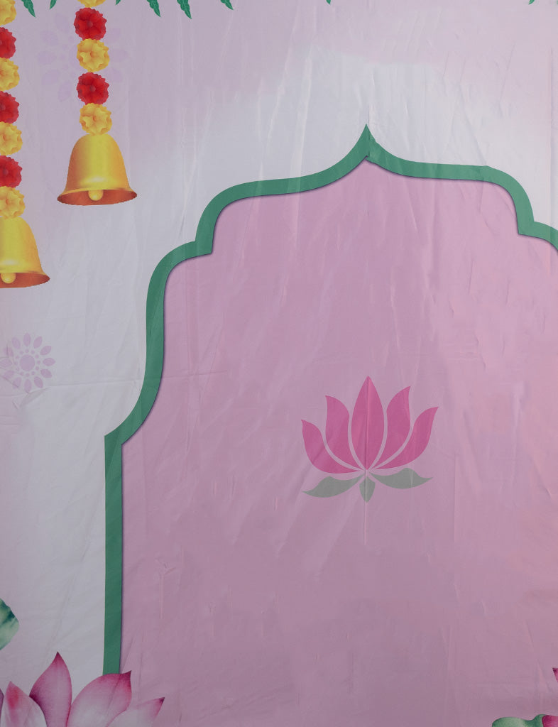 - The backdrop features Digital Printed Pichwai design in Pink & Green hues.