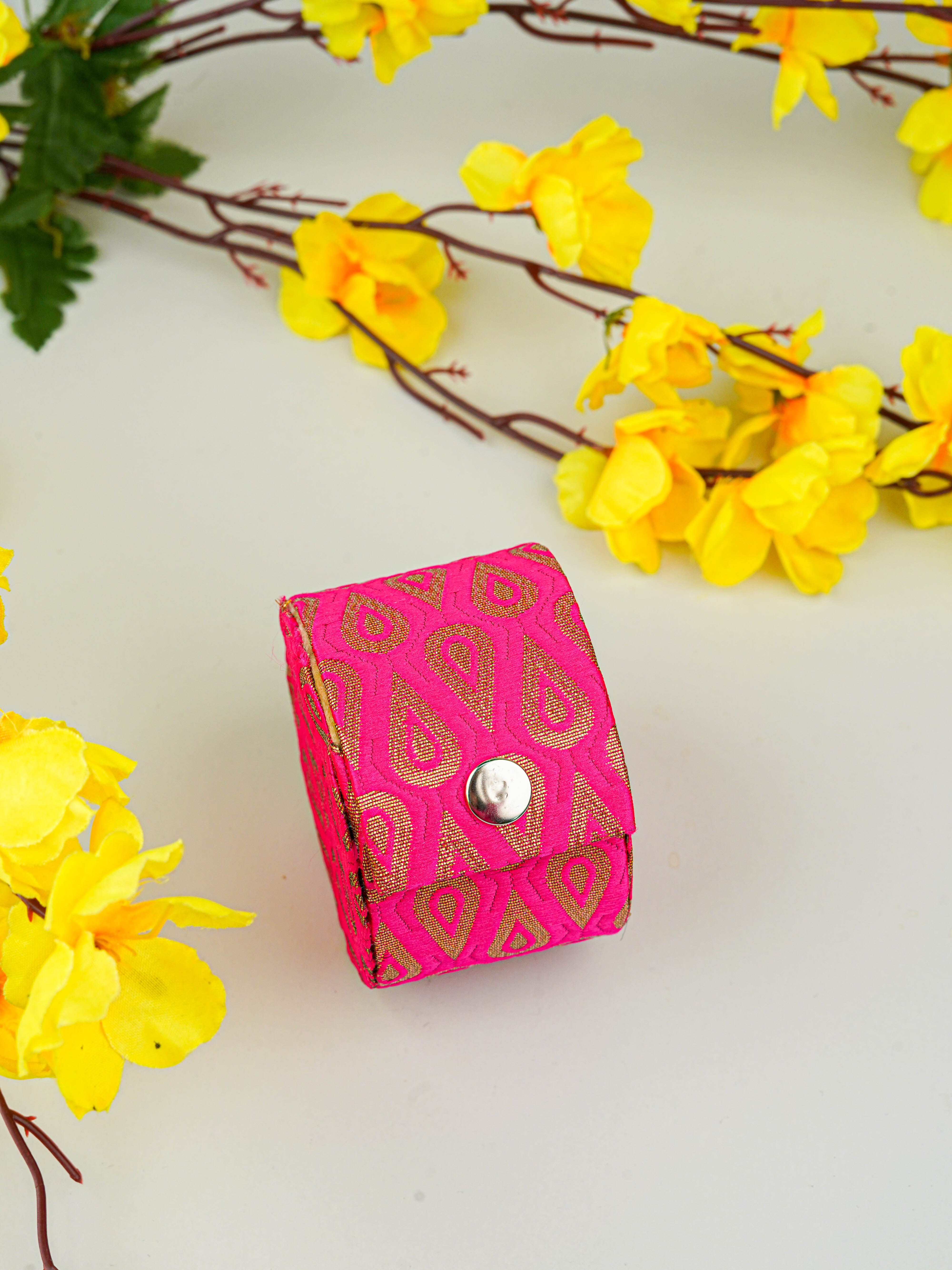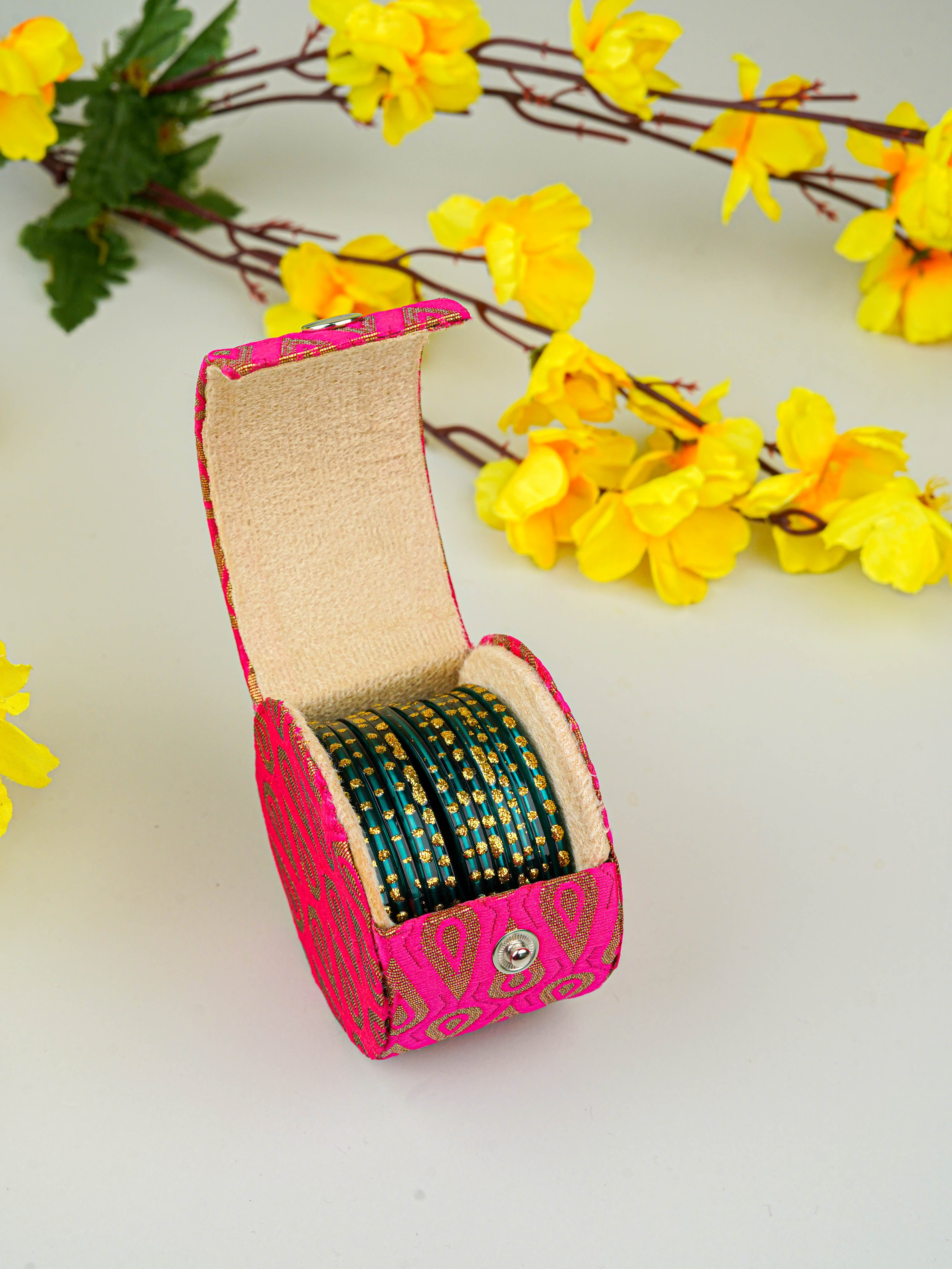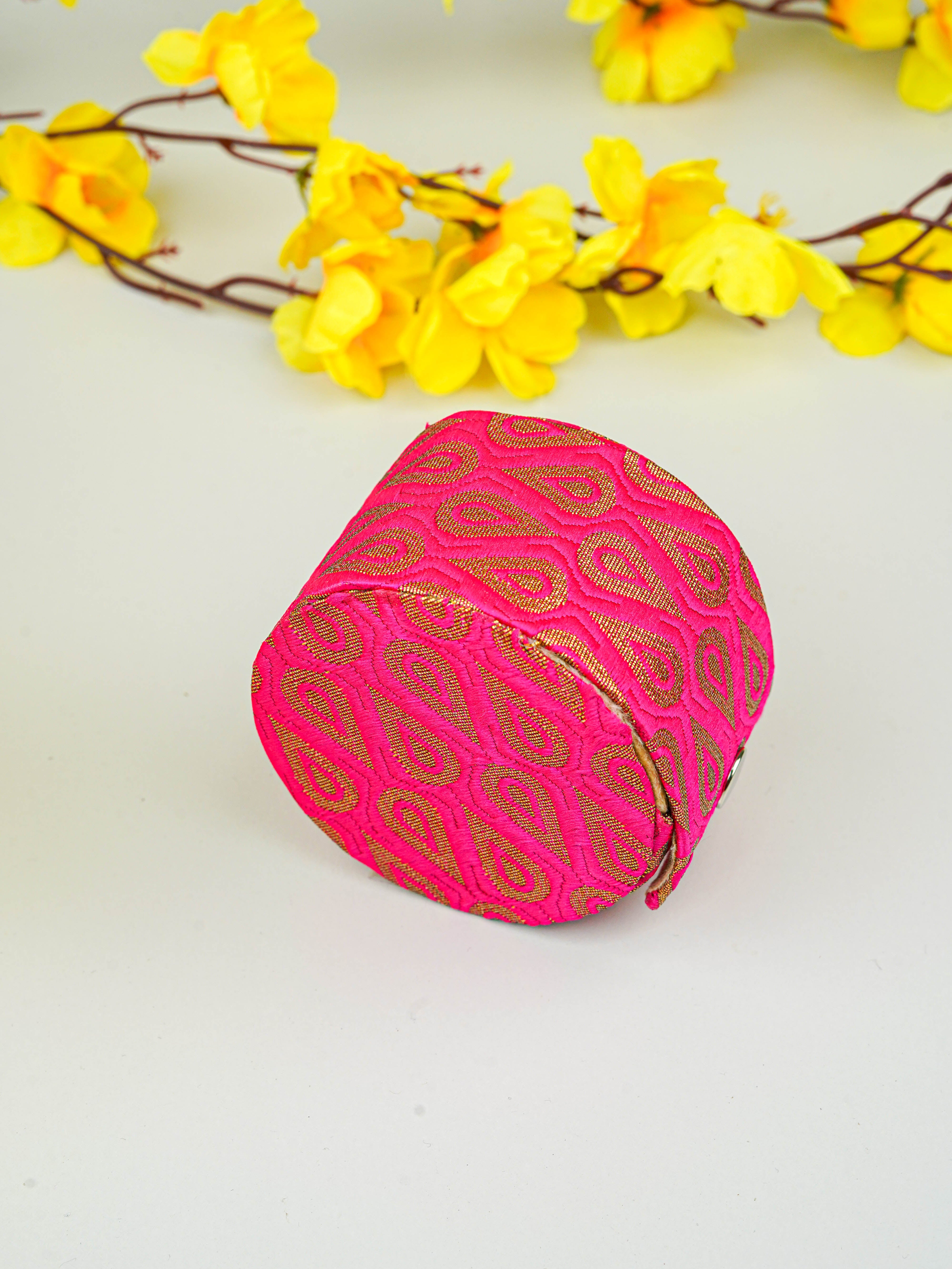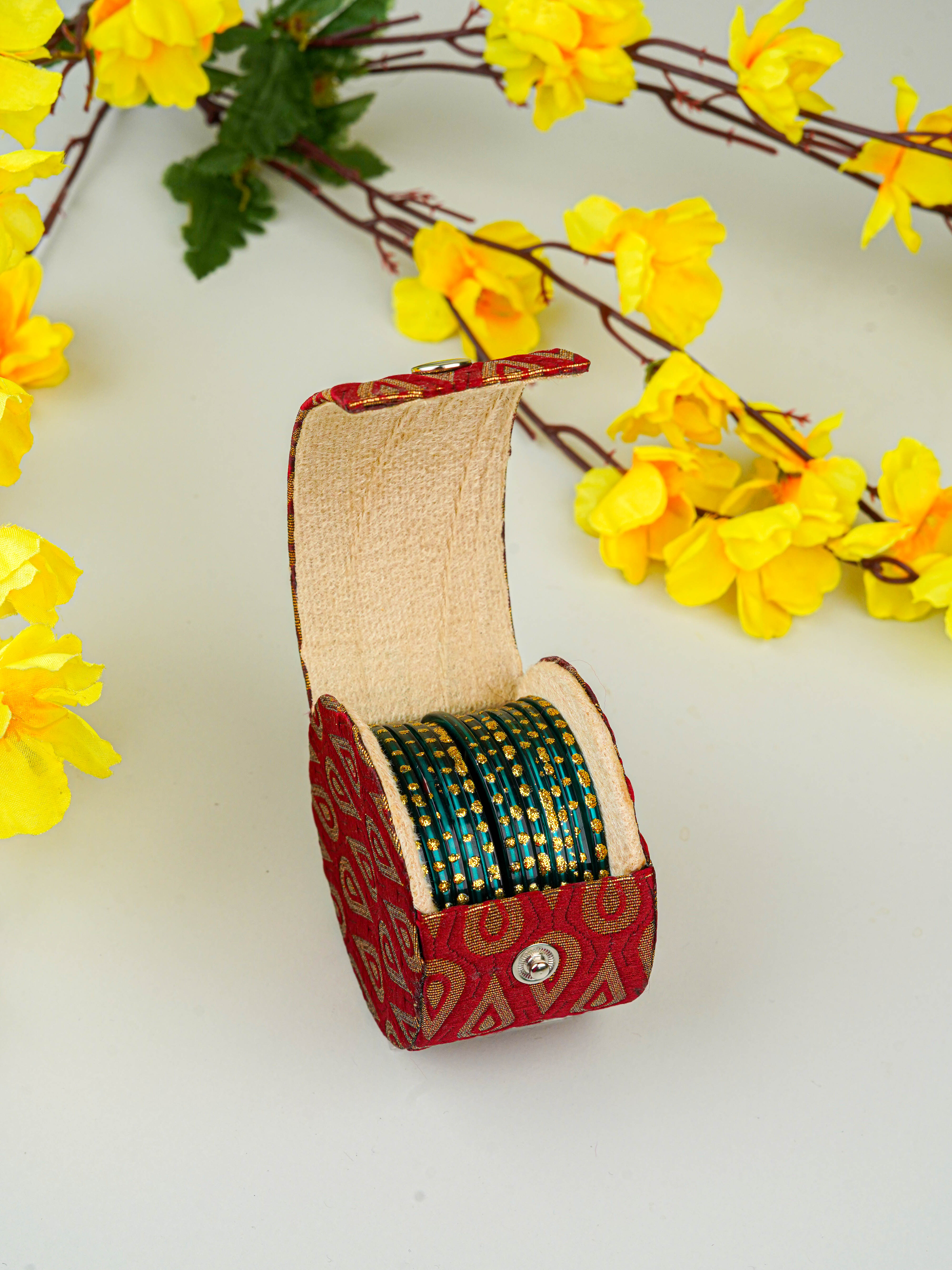 Bangle Holder with golden brocade prints. Mini size holder will be an adorable return gift for your guests on auspicious occasions like Wedding, Baby Shower, Upanayanam etc.