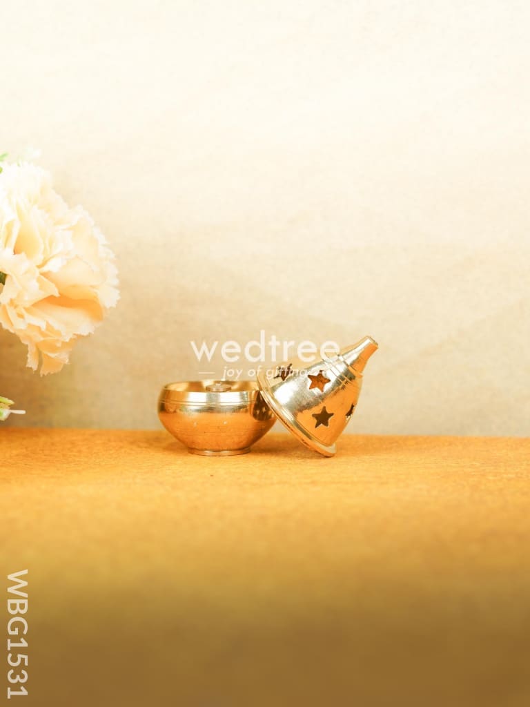 - Lighting diya bring in good vibes wherever it is kept and also takes an integral part in everyday pooja. When this lovely diya is lit, the stars from the top cover illuminates a shadow making the surrounding serene!