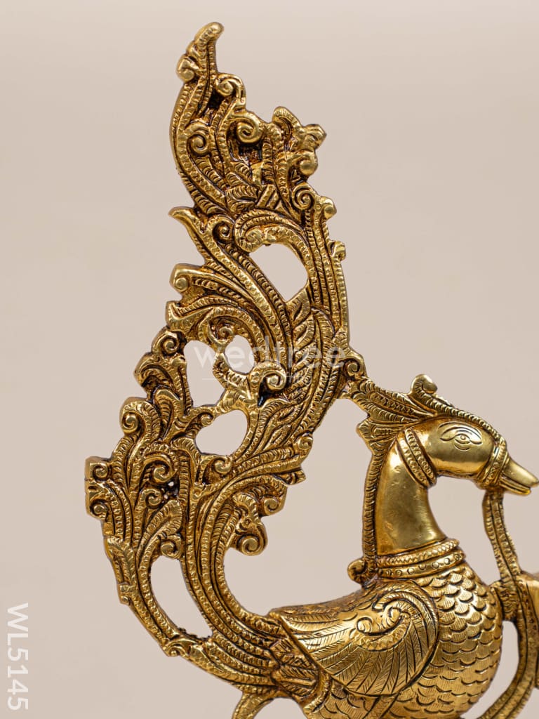 - Brass Annapakshi Diya, featuring the Auspicious Annapakshi Gracefully Holding the Traditional oil Lamp.