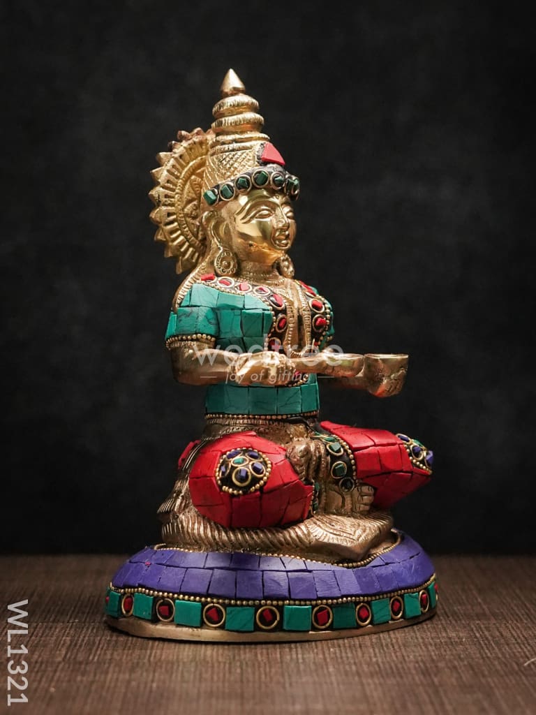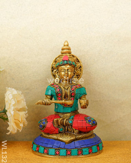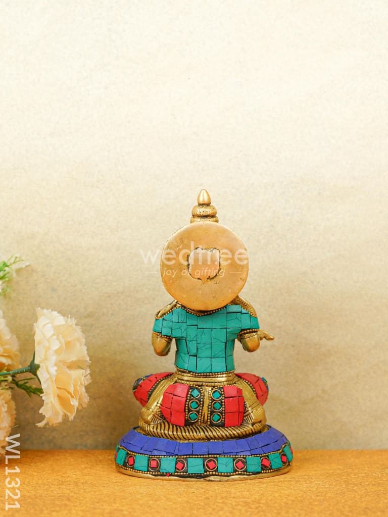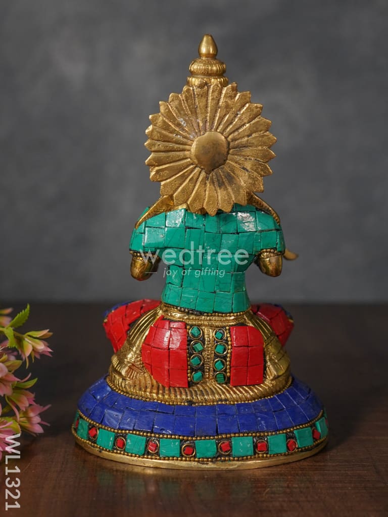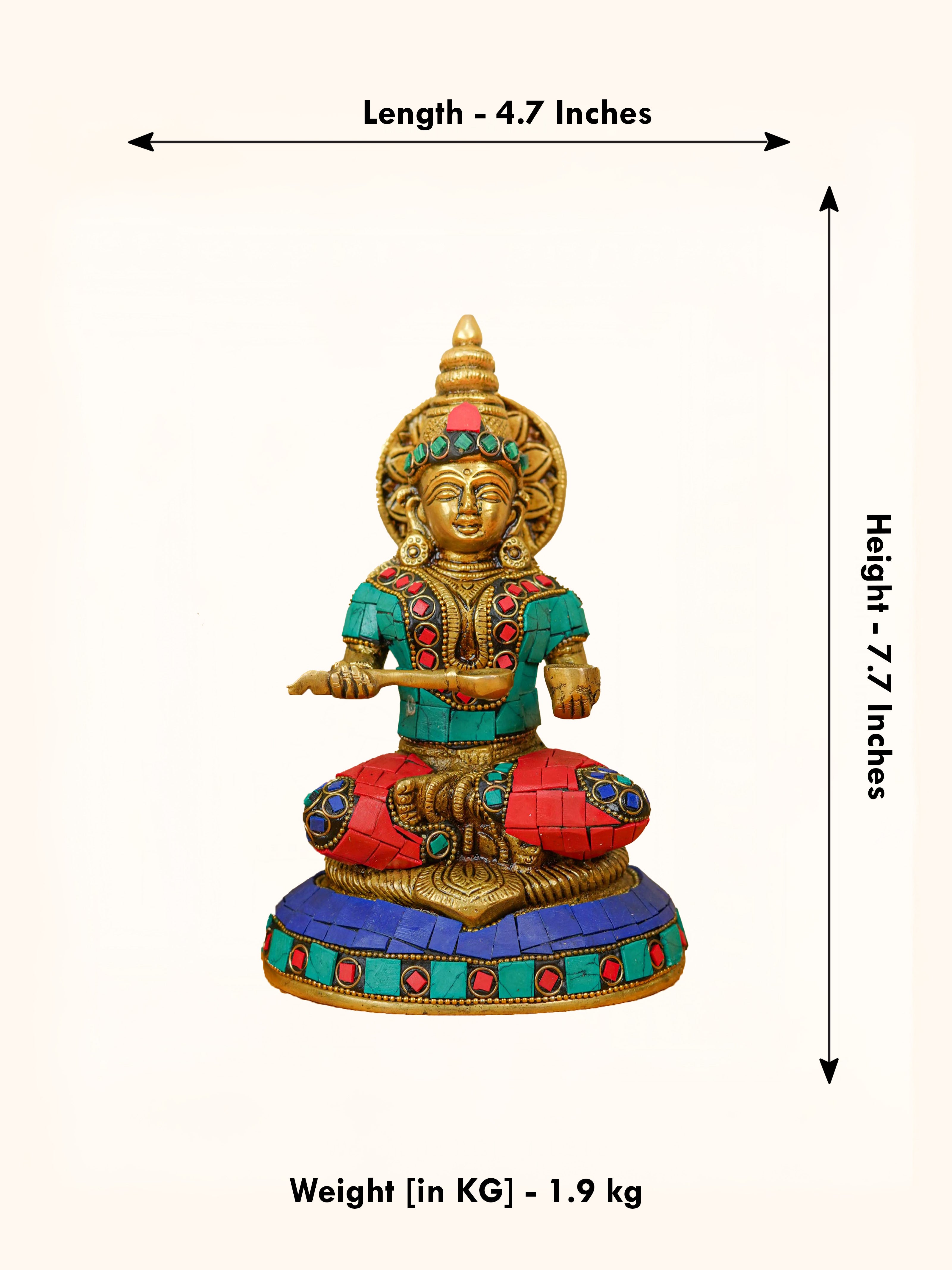 - This idol made of Brass, ornated with colourful Stone Work is handcrafted by experienced artisans with utmost attention to detail.