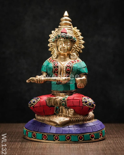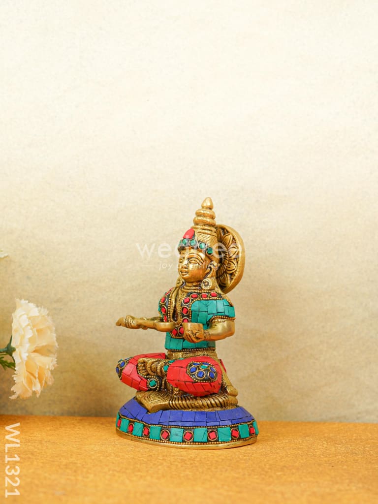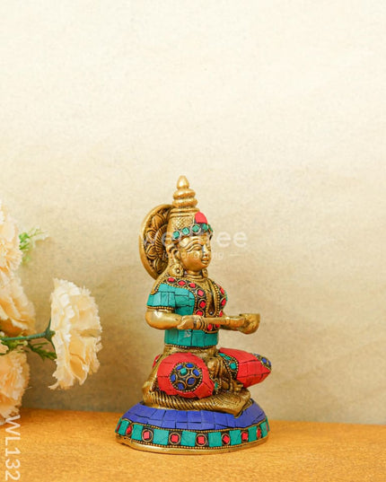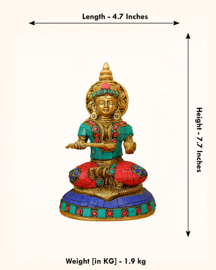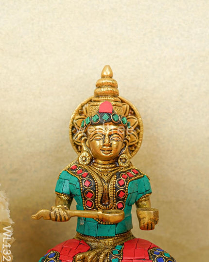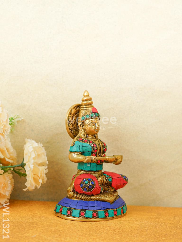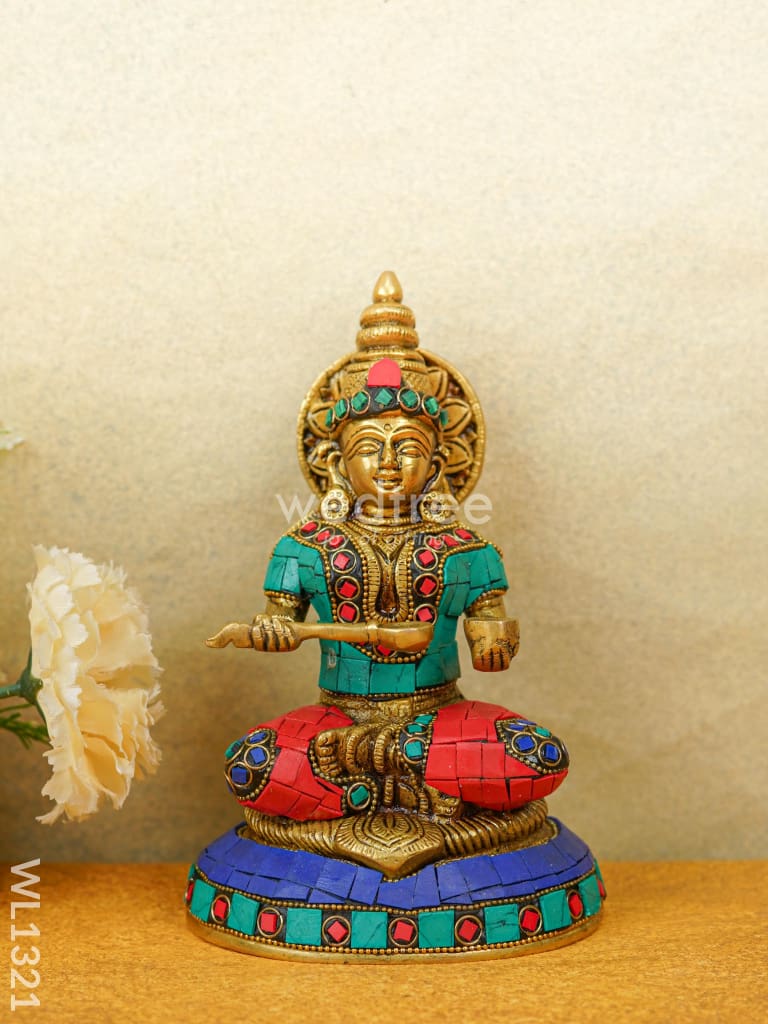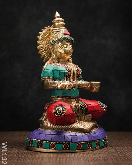 - This idol made of Brass, ornated with colourful Stone Work is handcrafted by experienced artisans with utmost attention to detail.