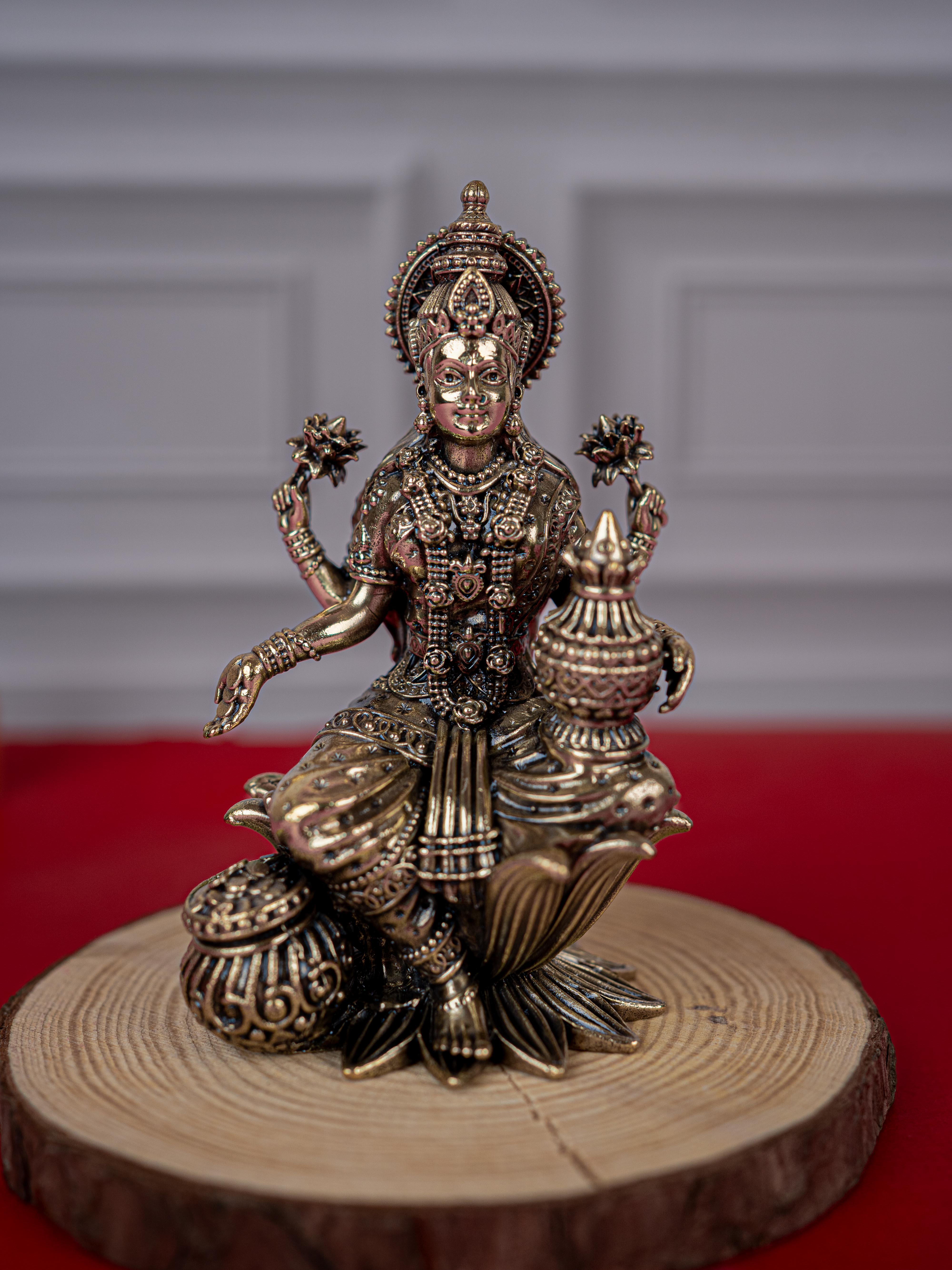 Brass Antique Lakshmi Idol - 4 inch - WL5413