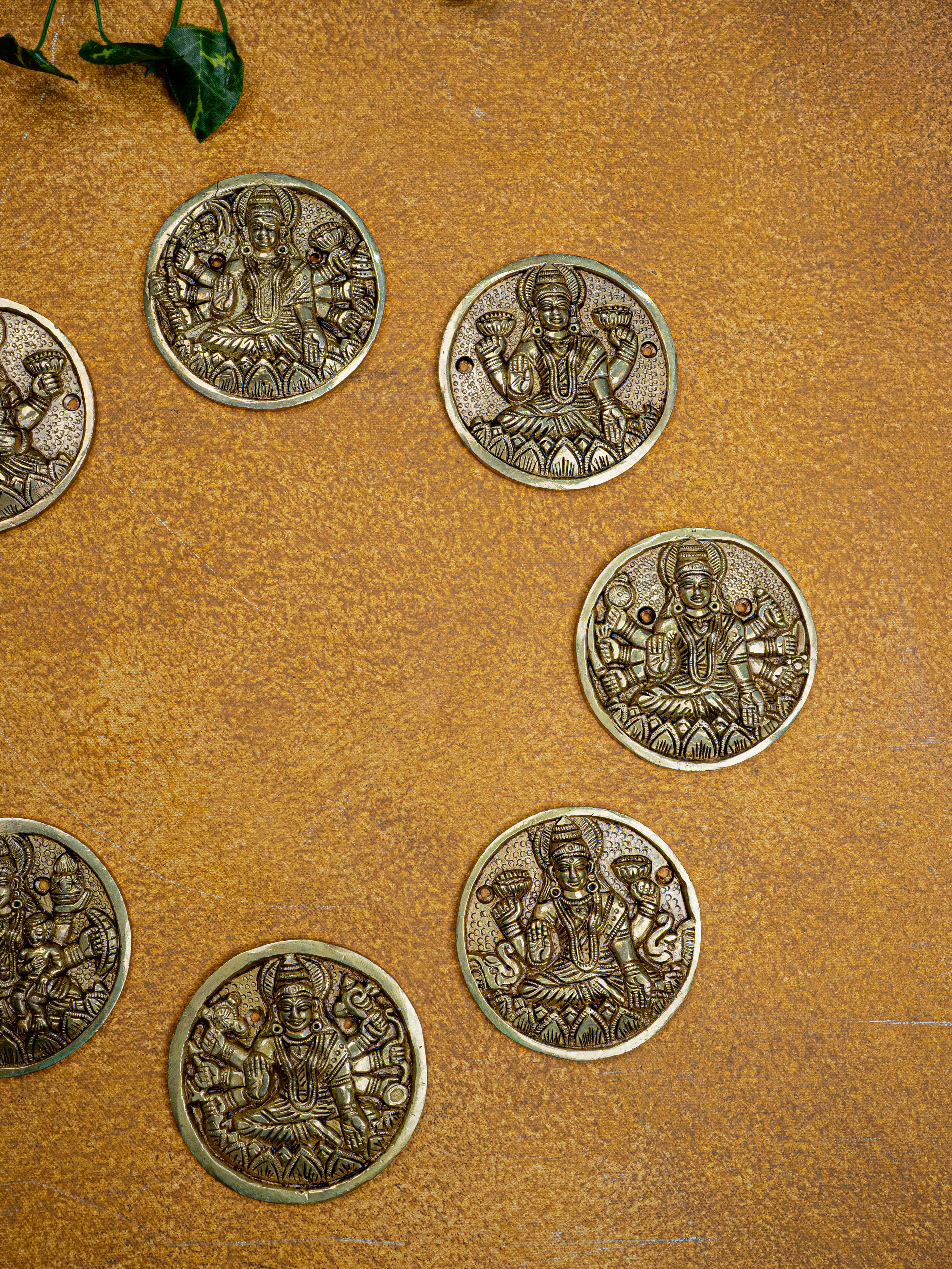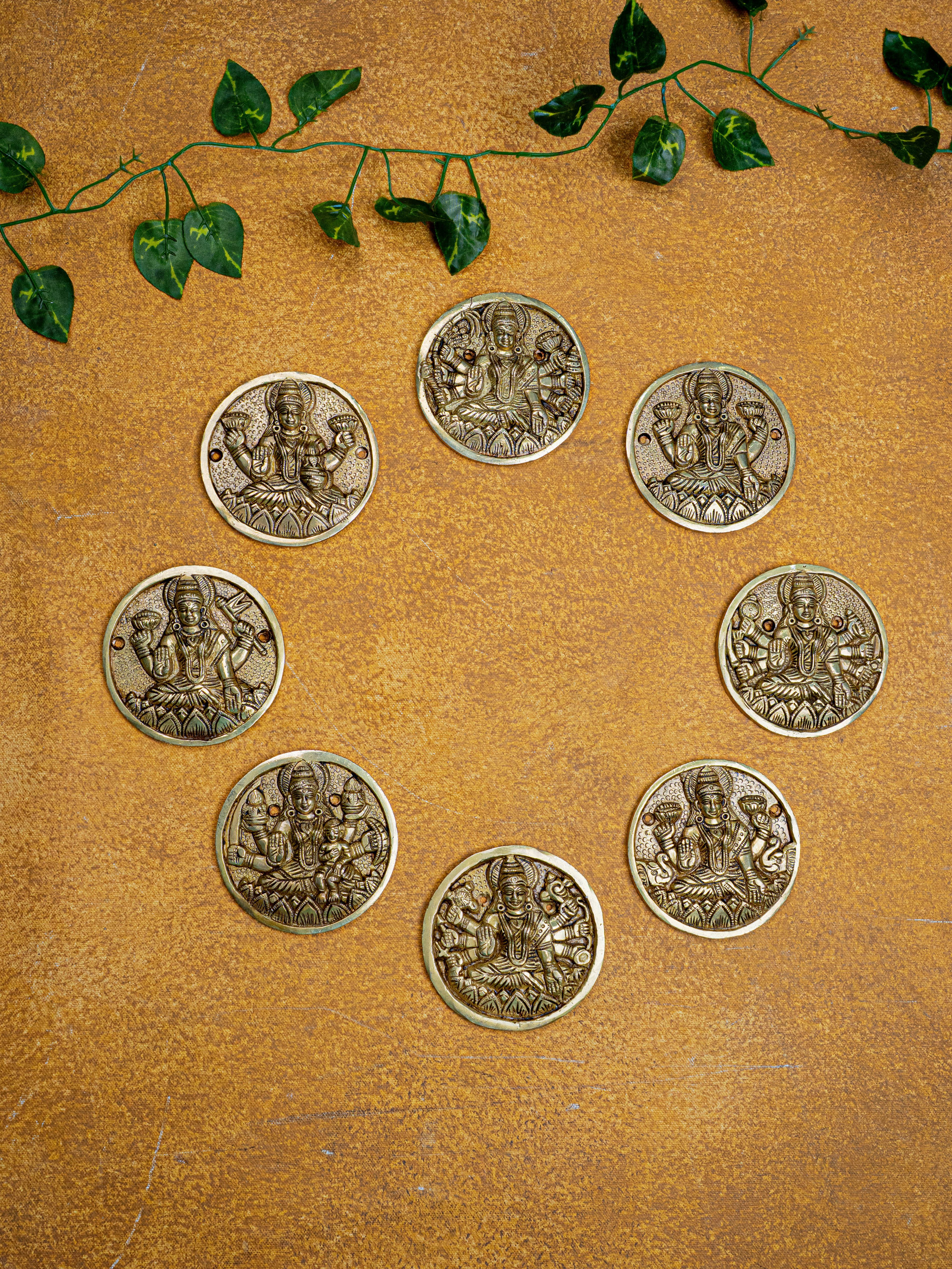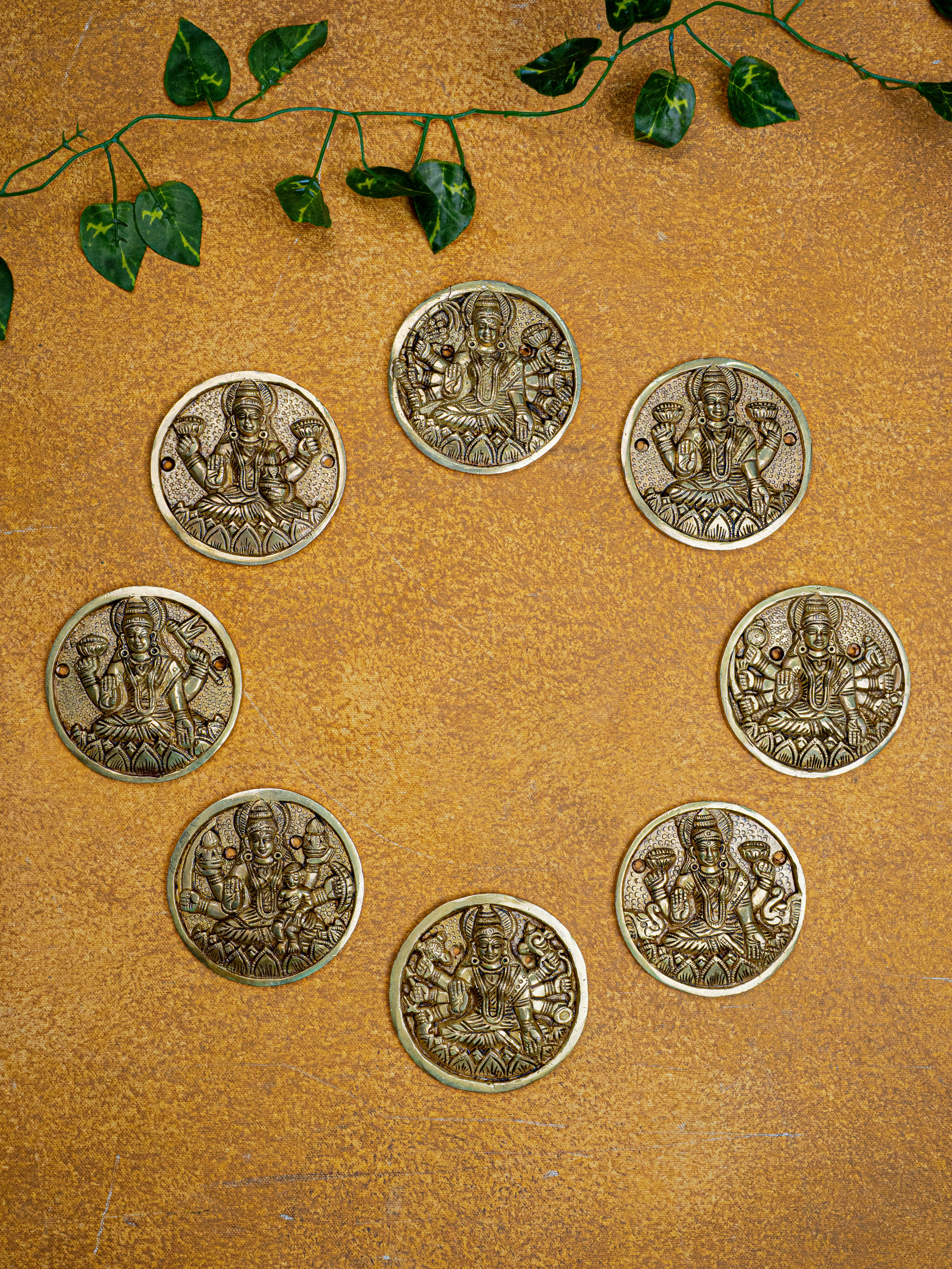 Brass Ashtalakshmi Plate Wall Hanging - Set of 8 - 3 inch - WL5458