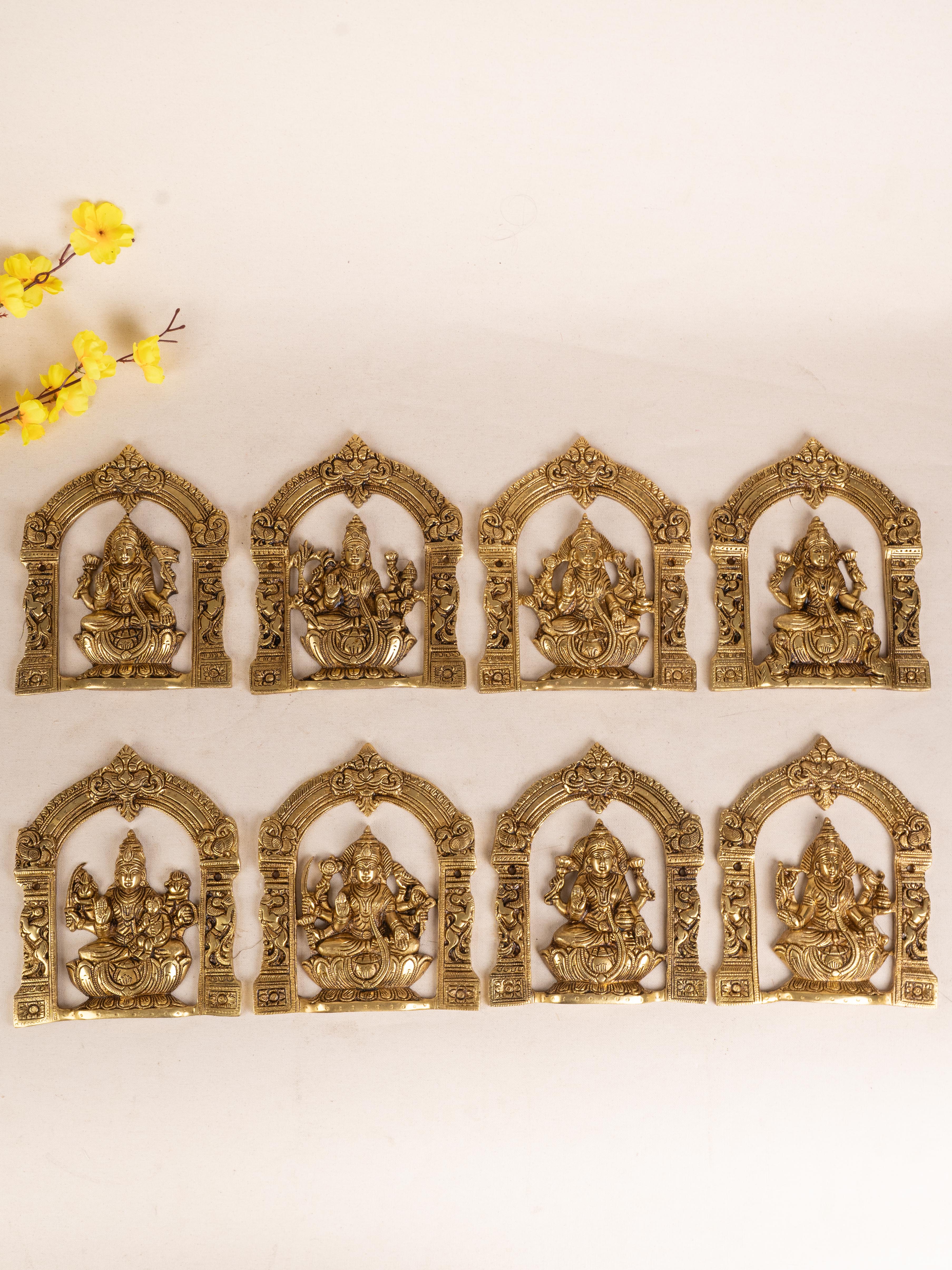 - This Wall Hanging Features Different Forms of Ashtalakshmi with Temple Design Frame.