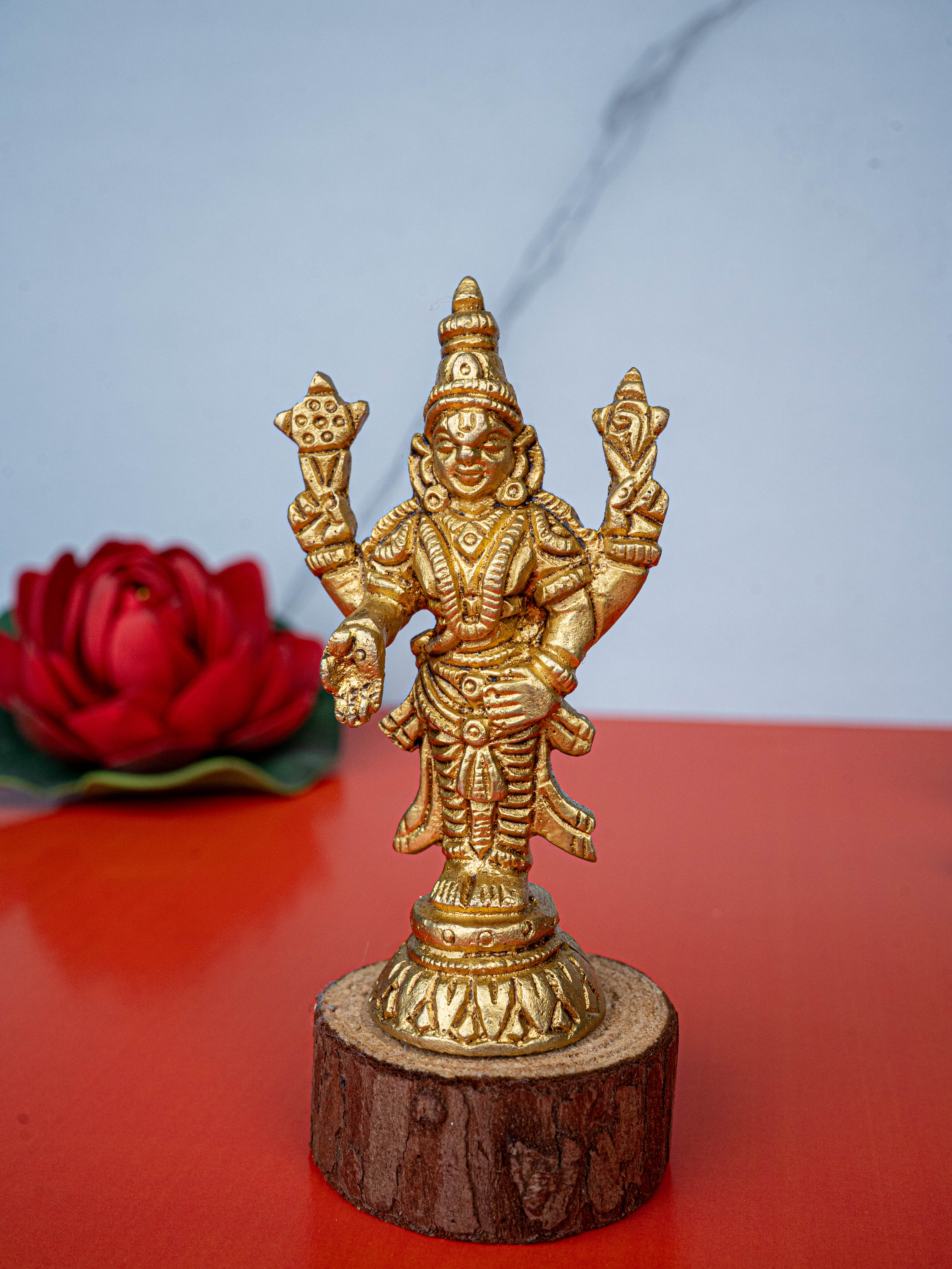 - Lord Vishnu is Depicted in his Traditional Four-Armed Form, Holding the Chakra (discus), shankha (conch).