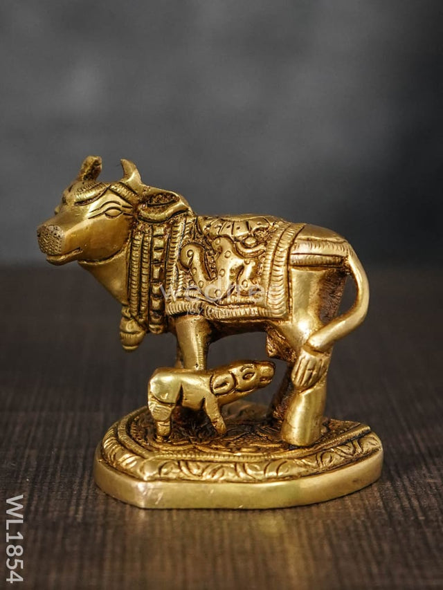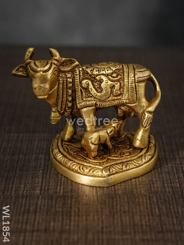 - An auspicious artifact of cow and calf handcrafted beautifully with the engraving of 'Om' on one side and 'Swastik' on the other side.