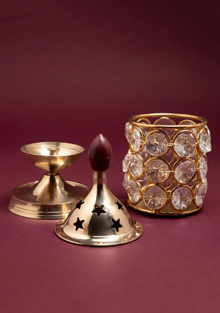 Are you ardent about making a return gift choice that specifically abides by all your traditions and cultural practices? If so, how about this Brass Diya surrounded by crystal arrangements & a beautiful like top lid overall giving a lustrous look! They can be dismantled which will be very easy to clean.
