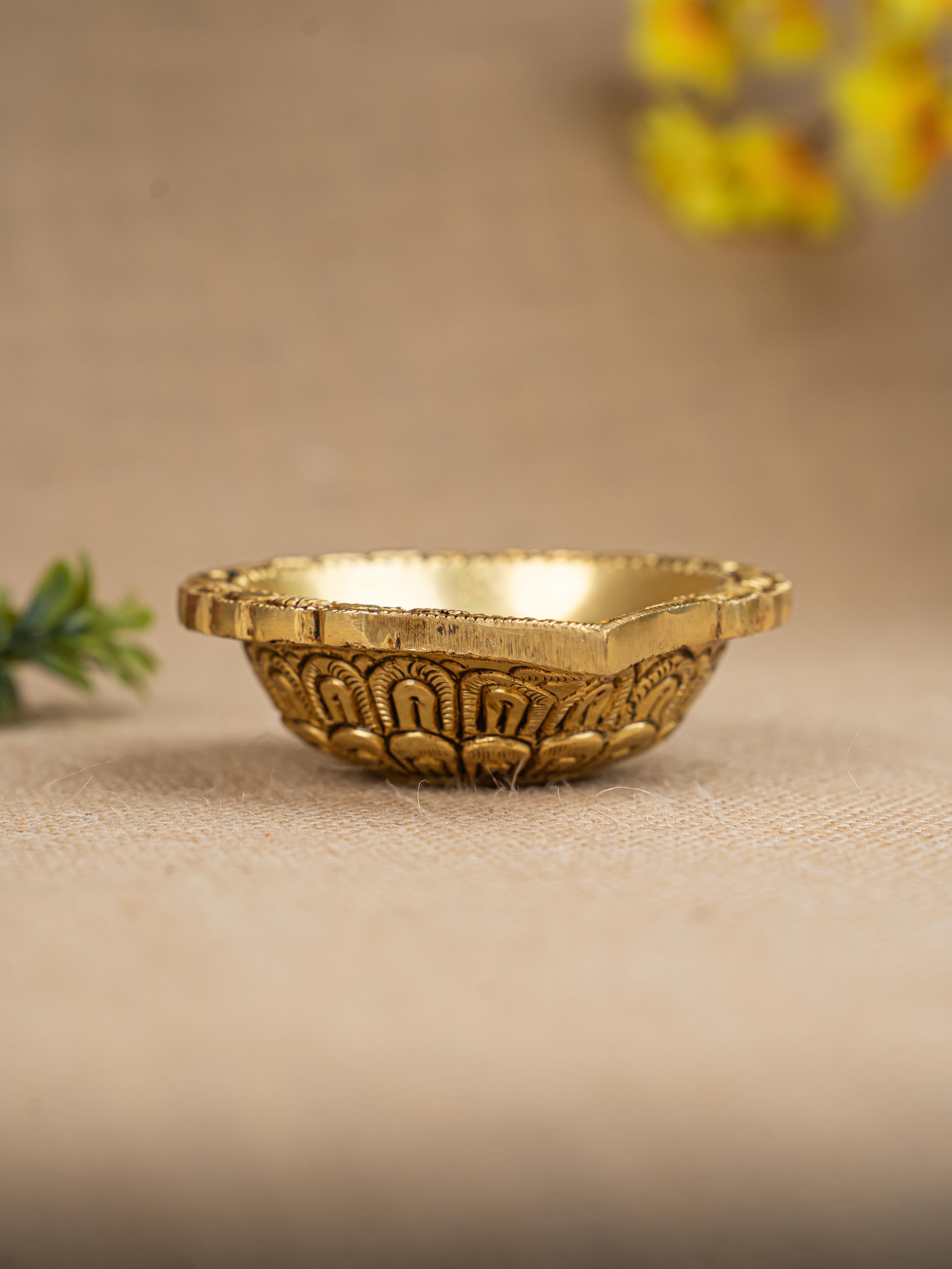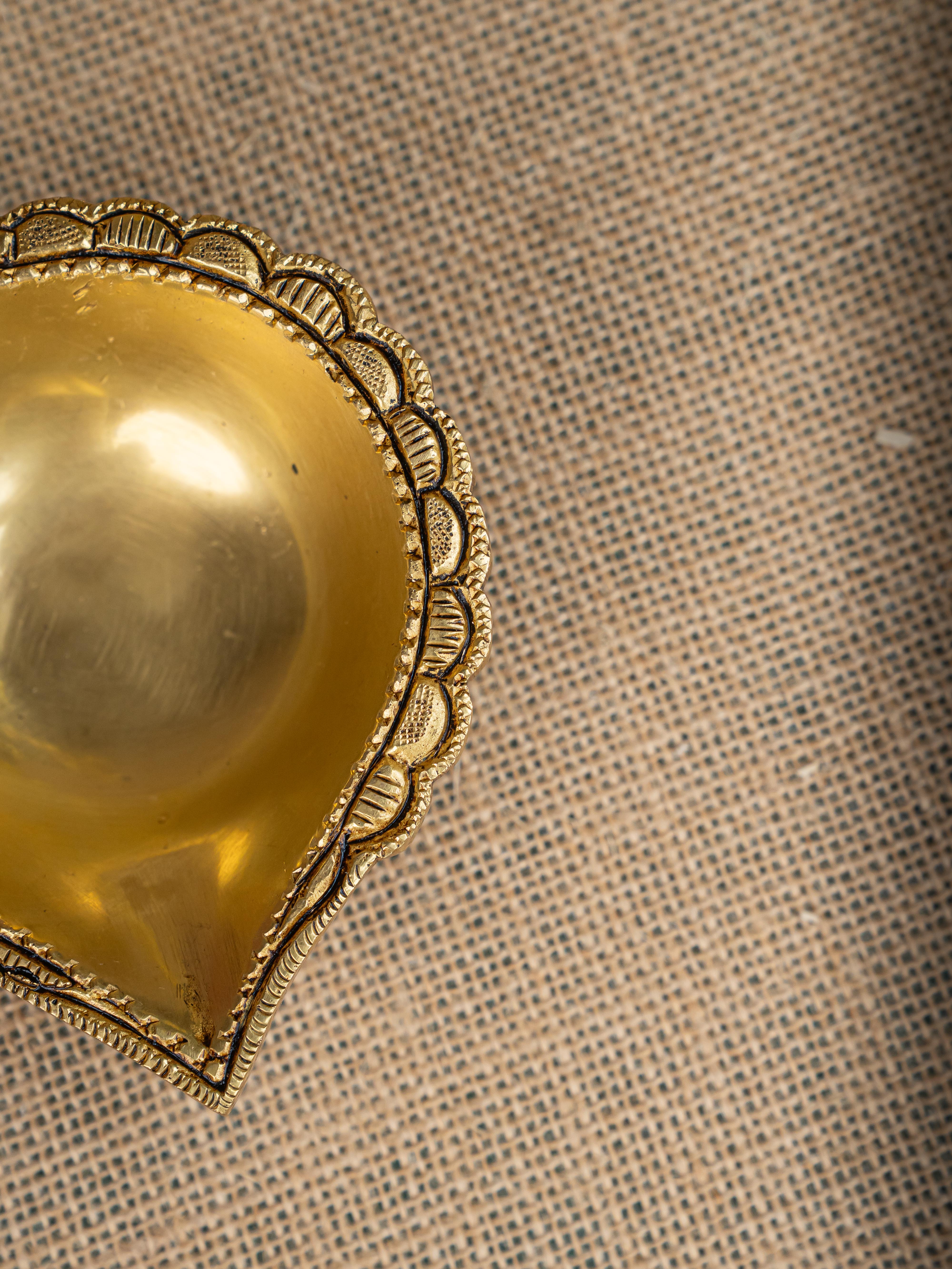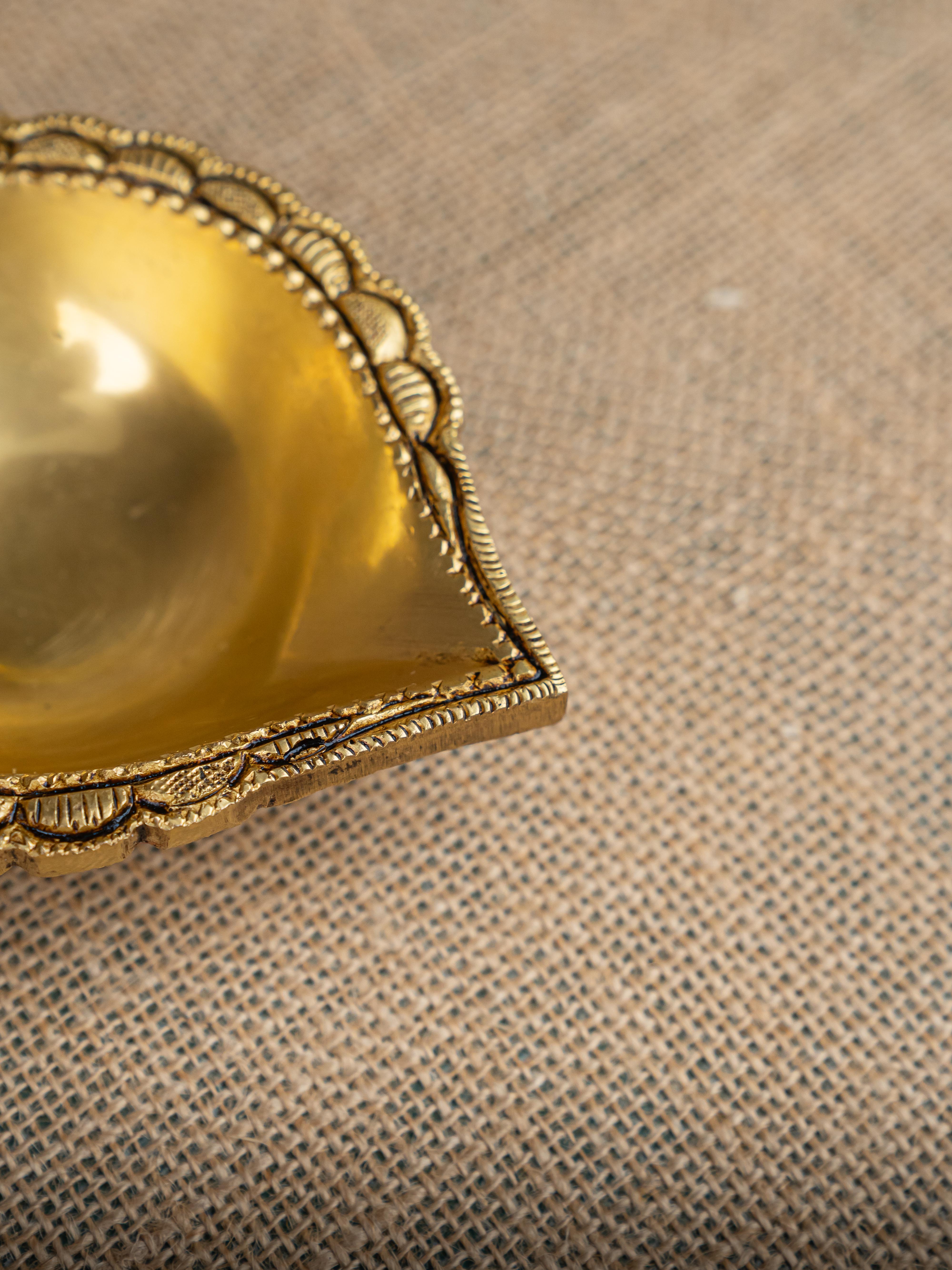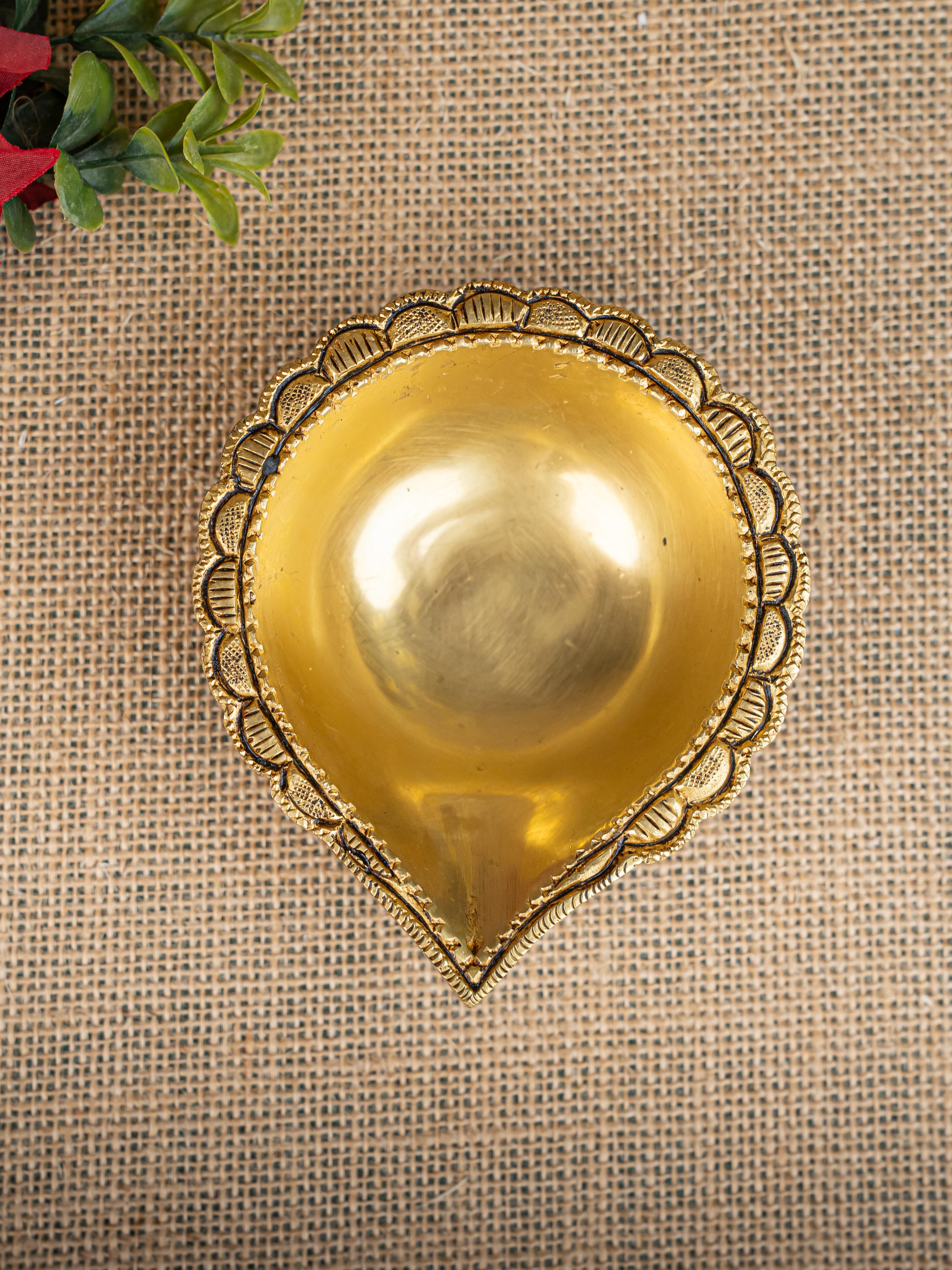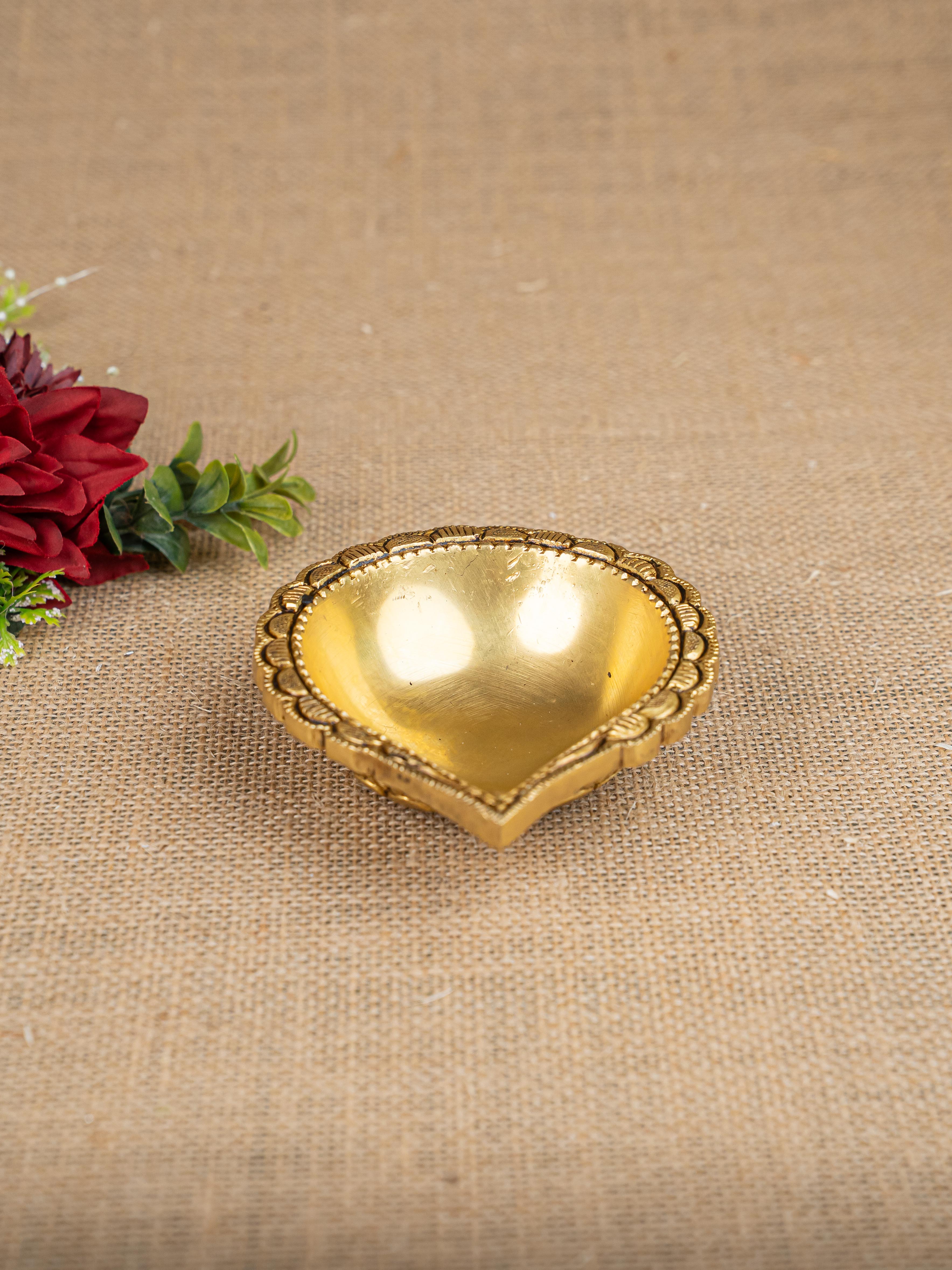- A Classic Make of Brass Diya with beautiful flower Cut Borders.