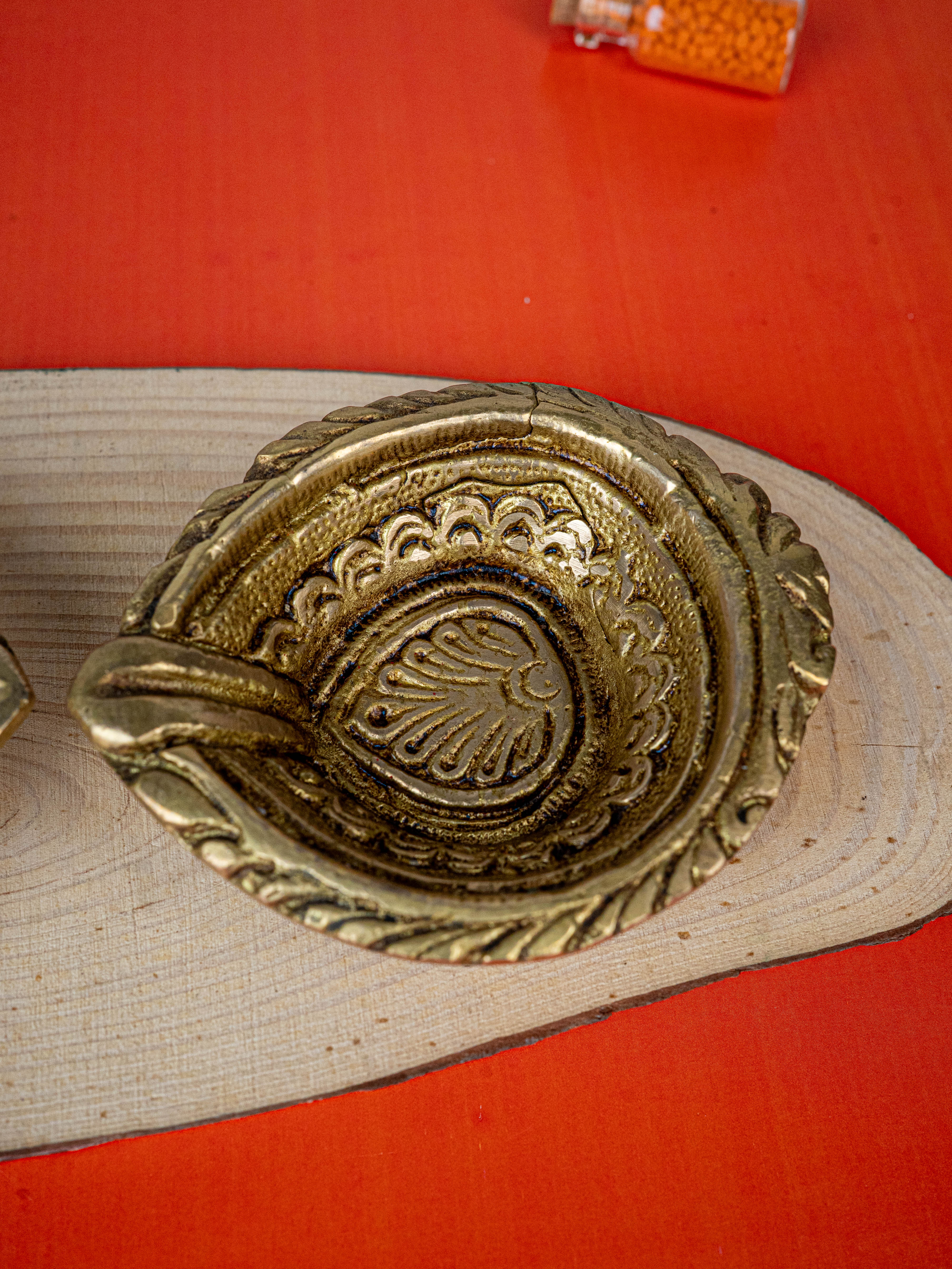 - A Classic Make of Brass Diya with beautiful flower Cut Borders.