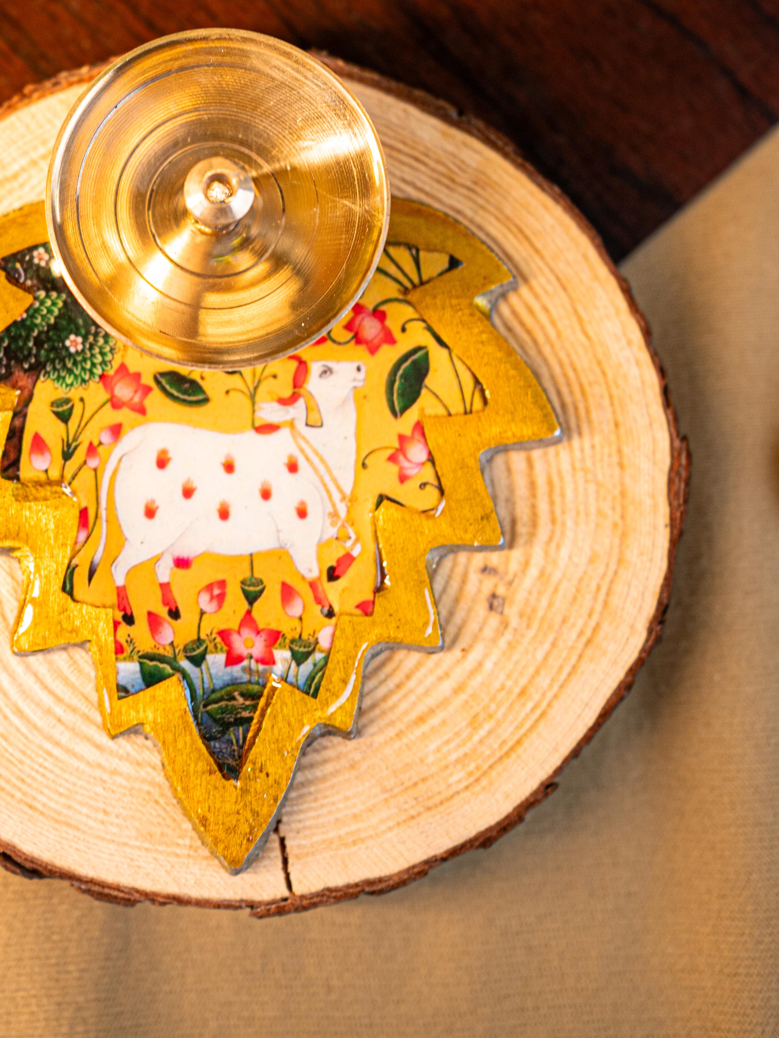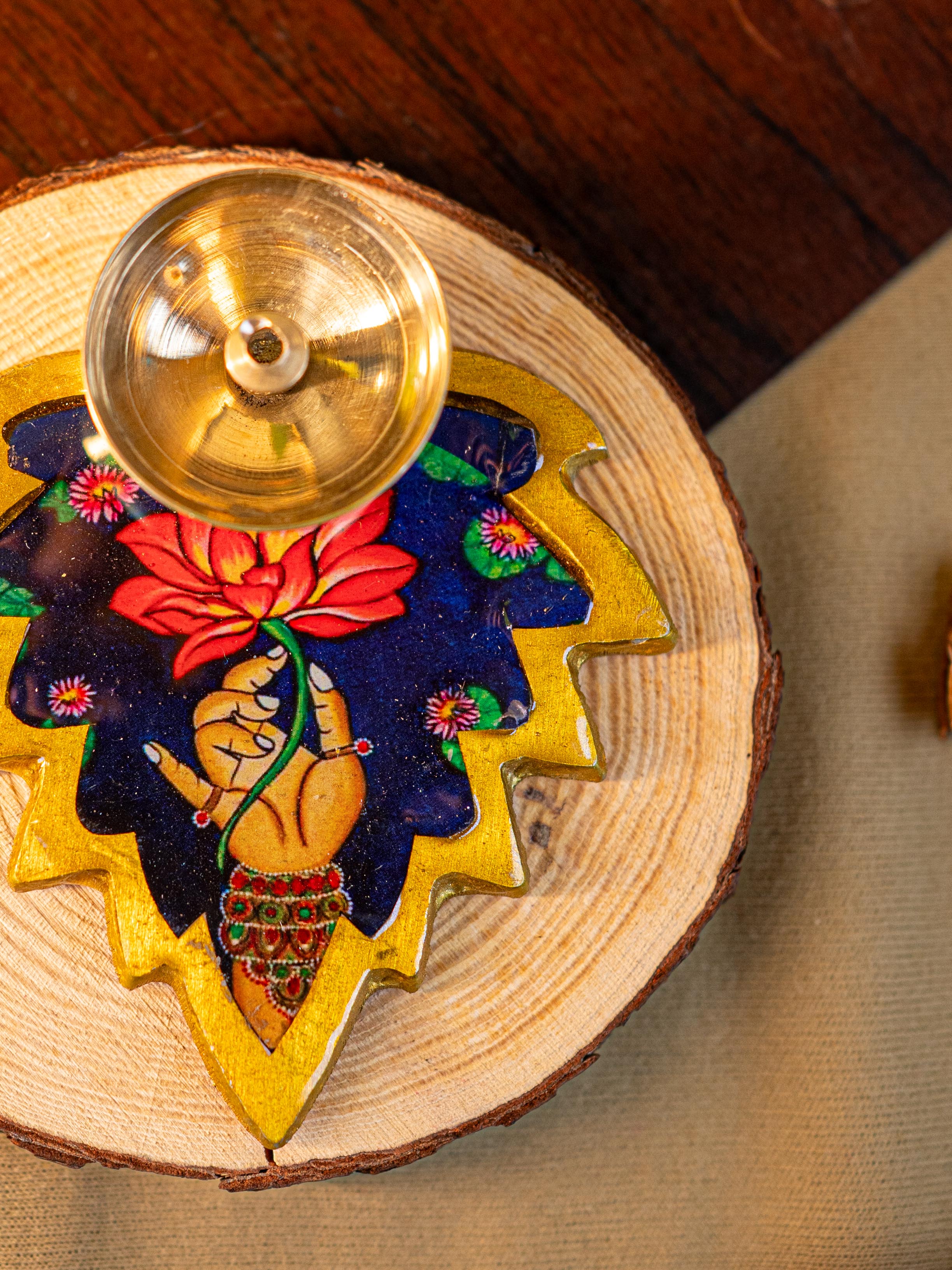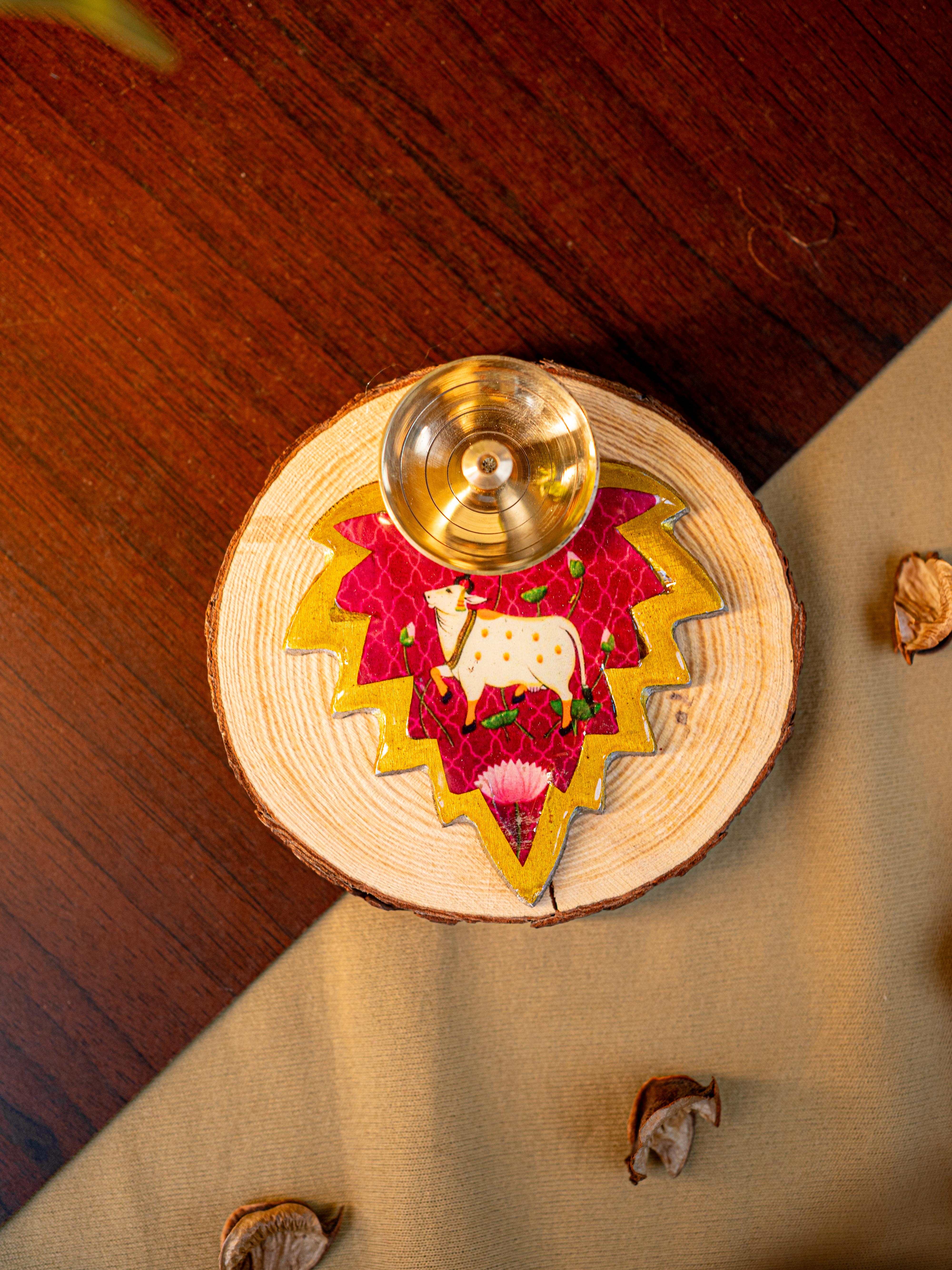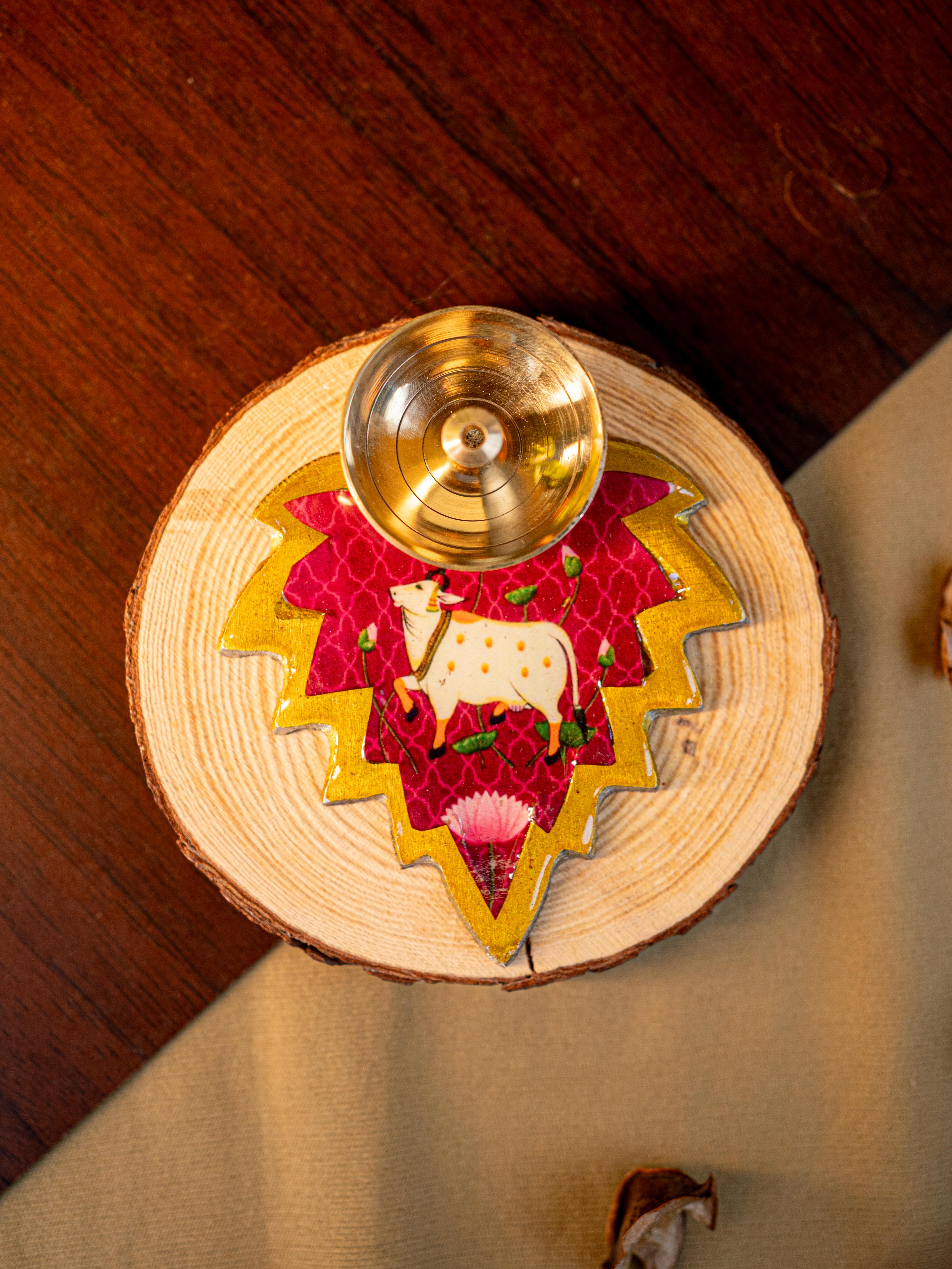 Brass Diya with Leaf - WBG1842