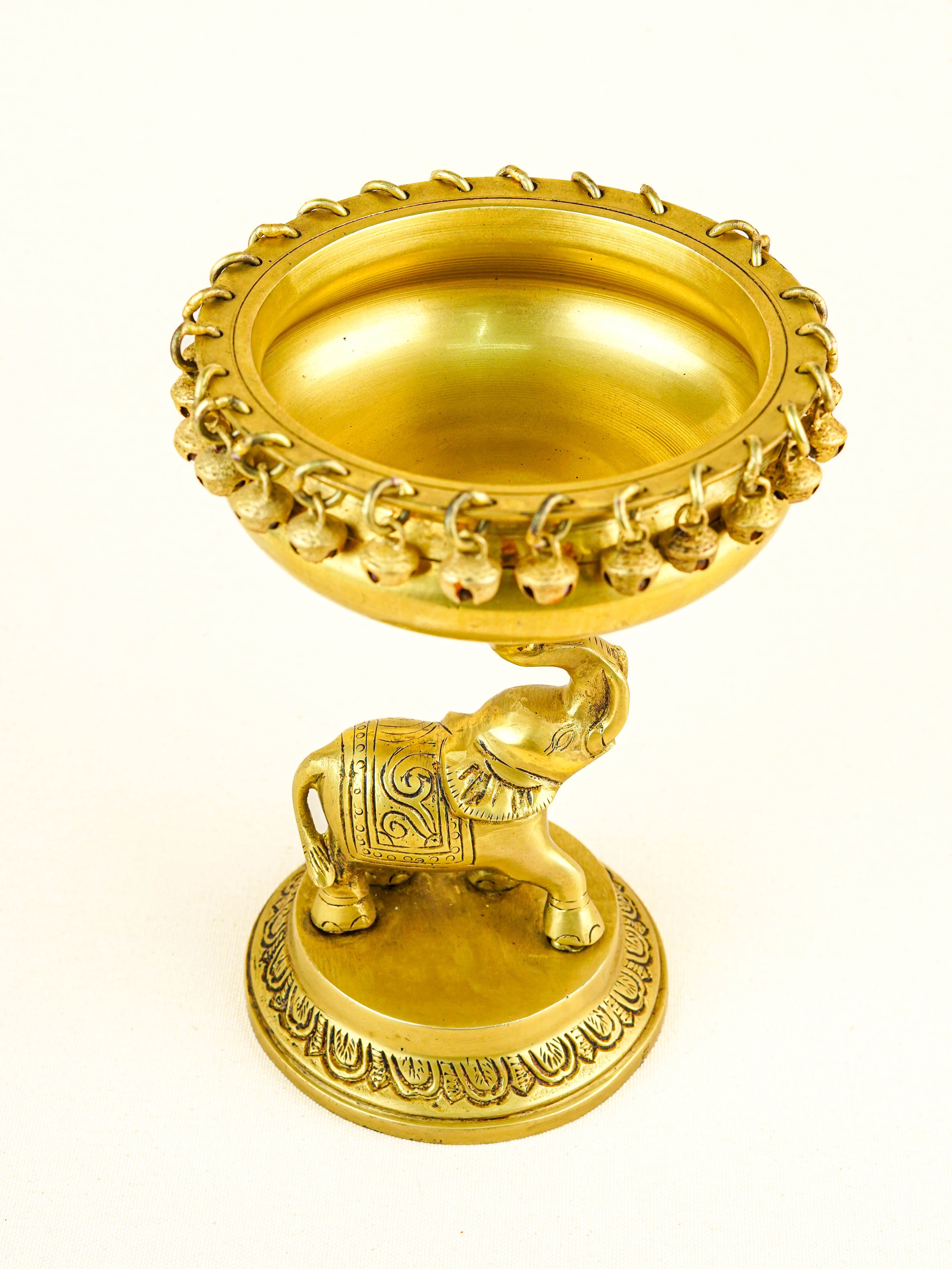 - Brass Elephant Urli with Bells is an Exquisite Piece of Traditional Indian Decor, Showcasing Fine Craftsmanship and Cultural Elegance.
