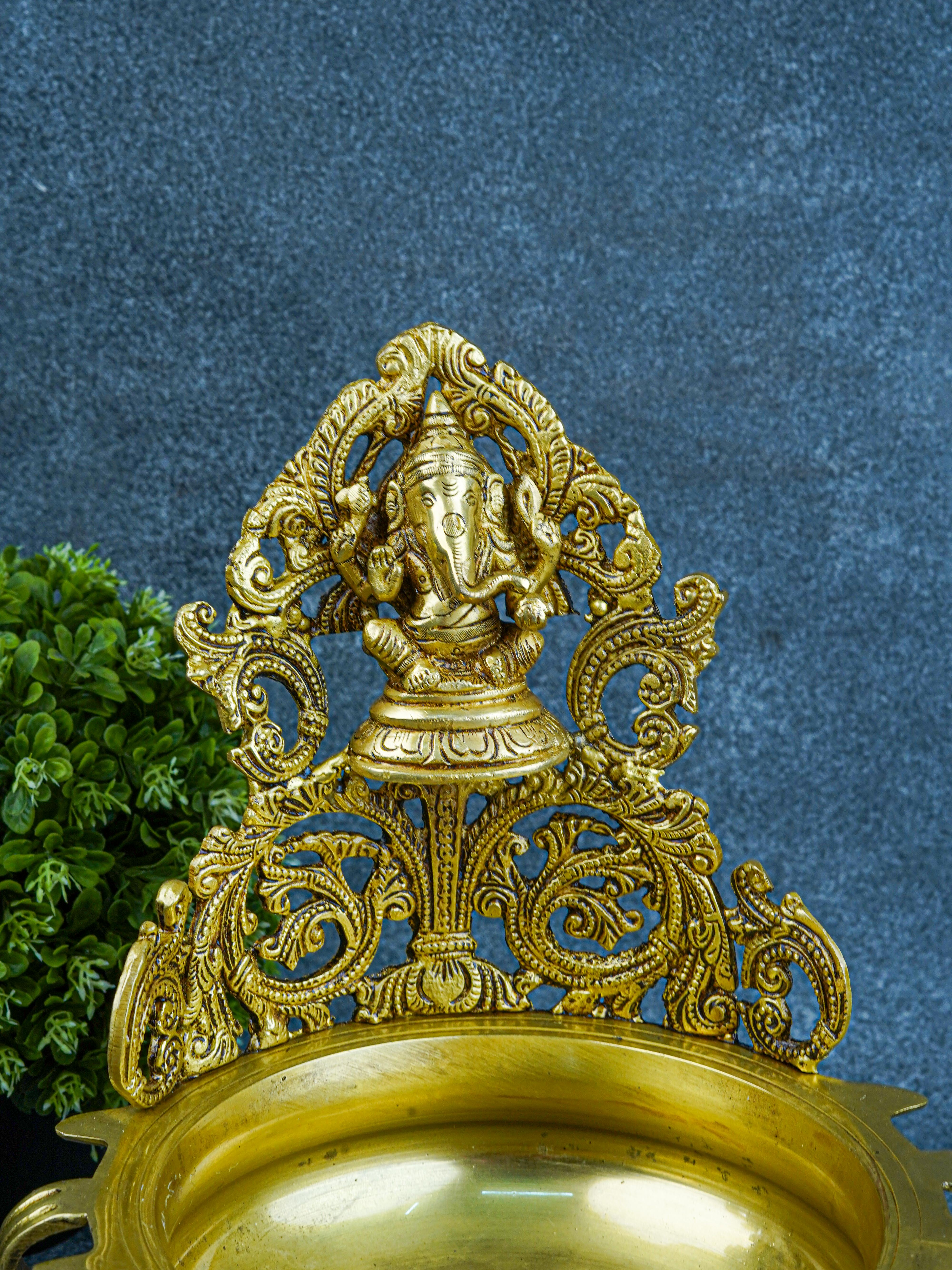 - Beautifully Sculpted Ganesha Figure is Placed at the Center of the Urli.