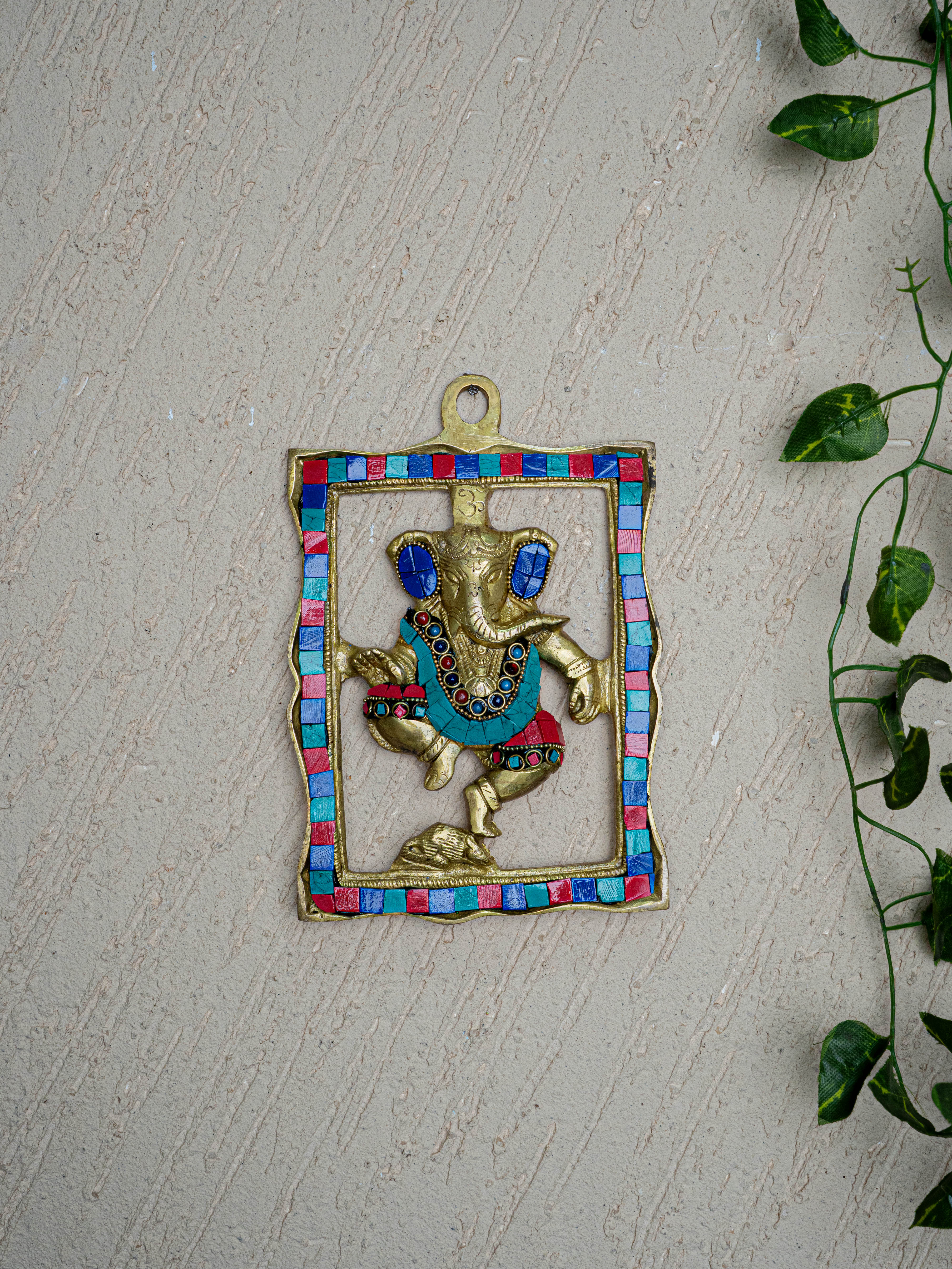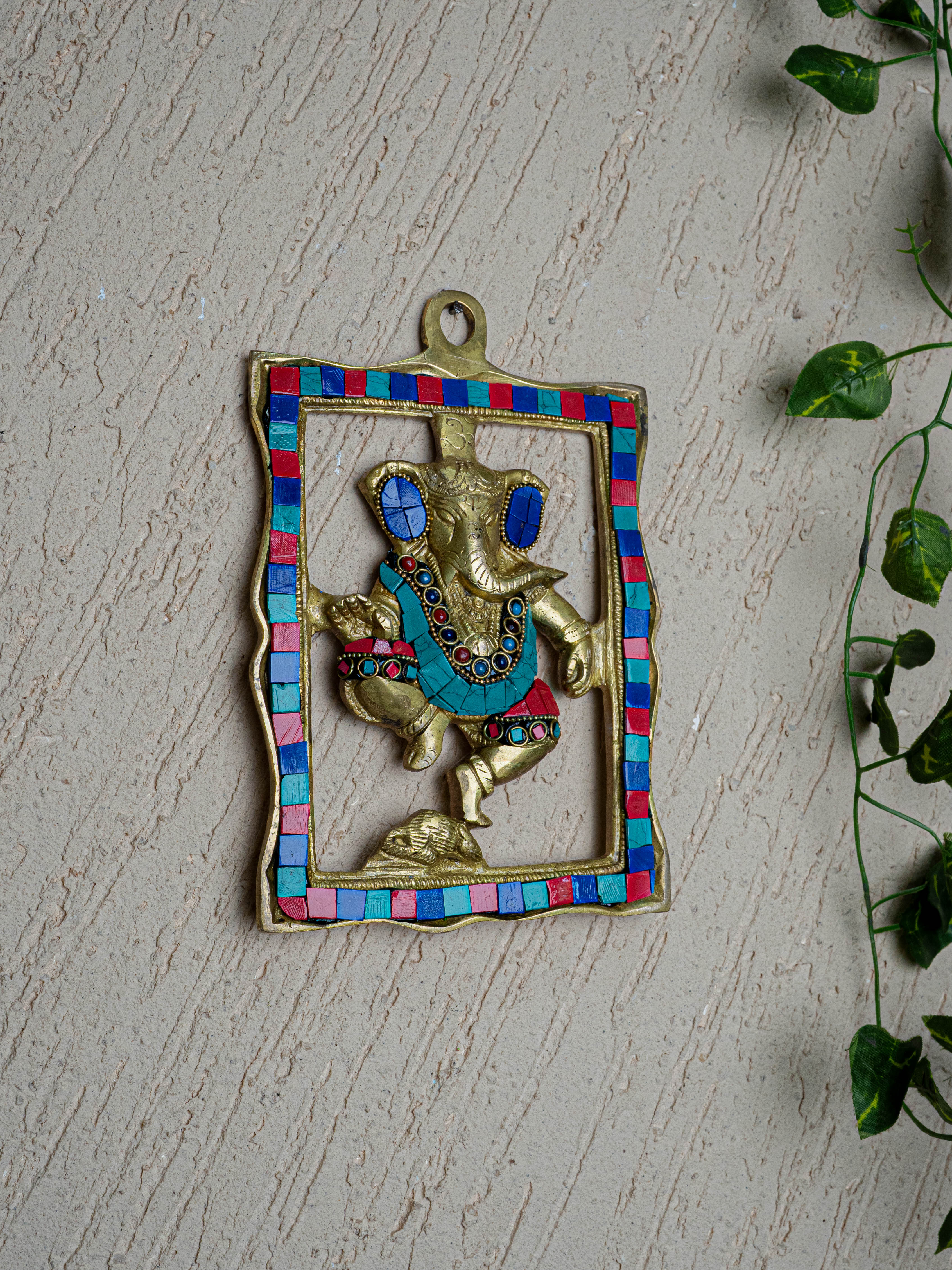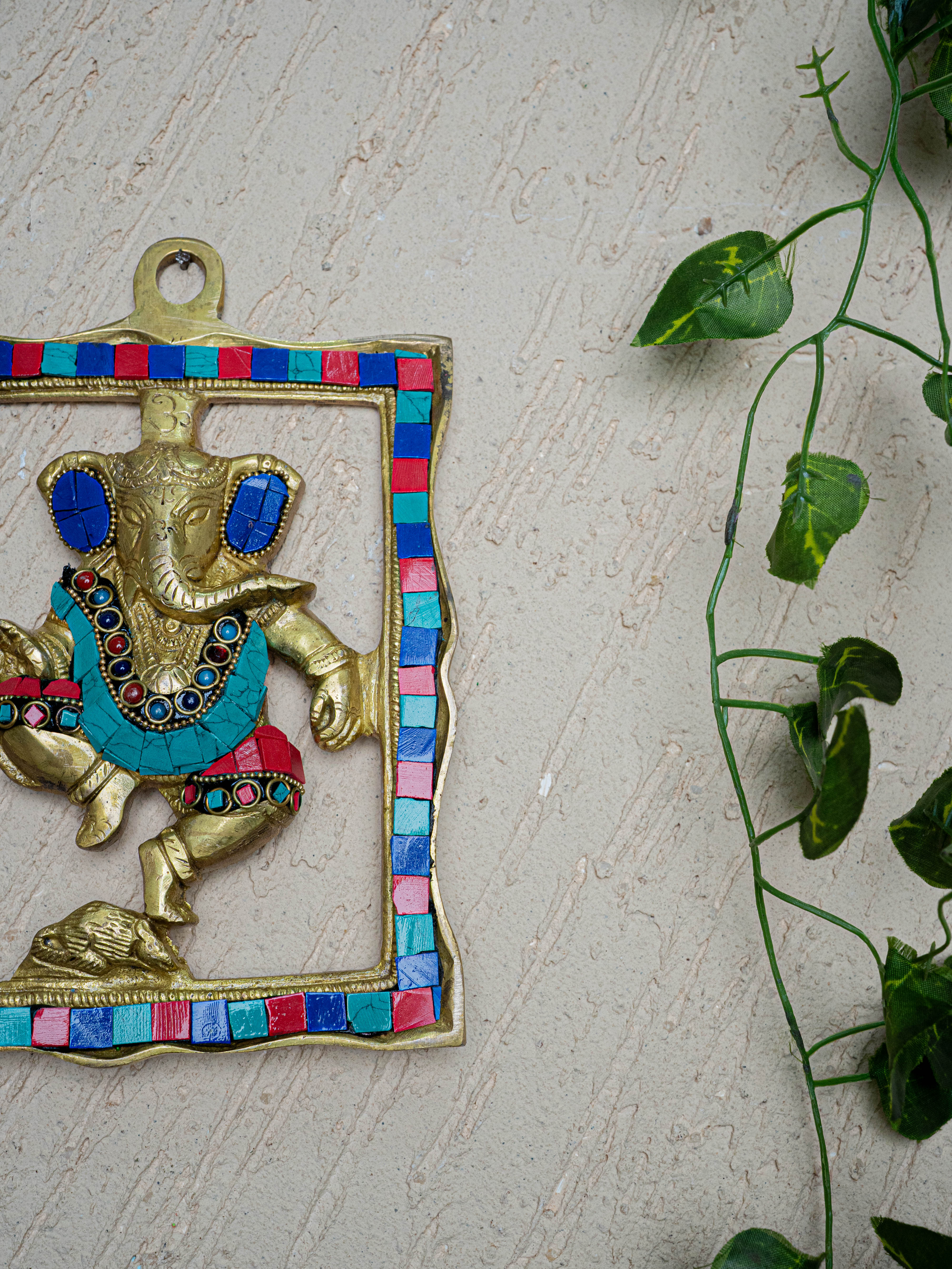Brass Ganesha Wall Hanging with Stone Work - 9 inch - WL5452