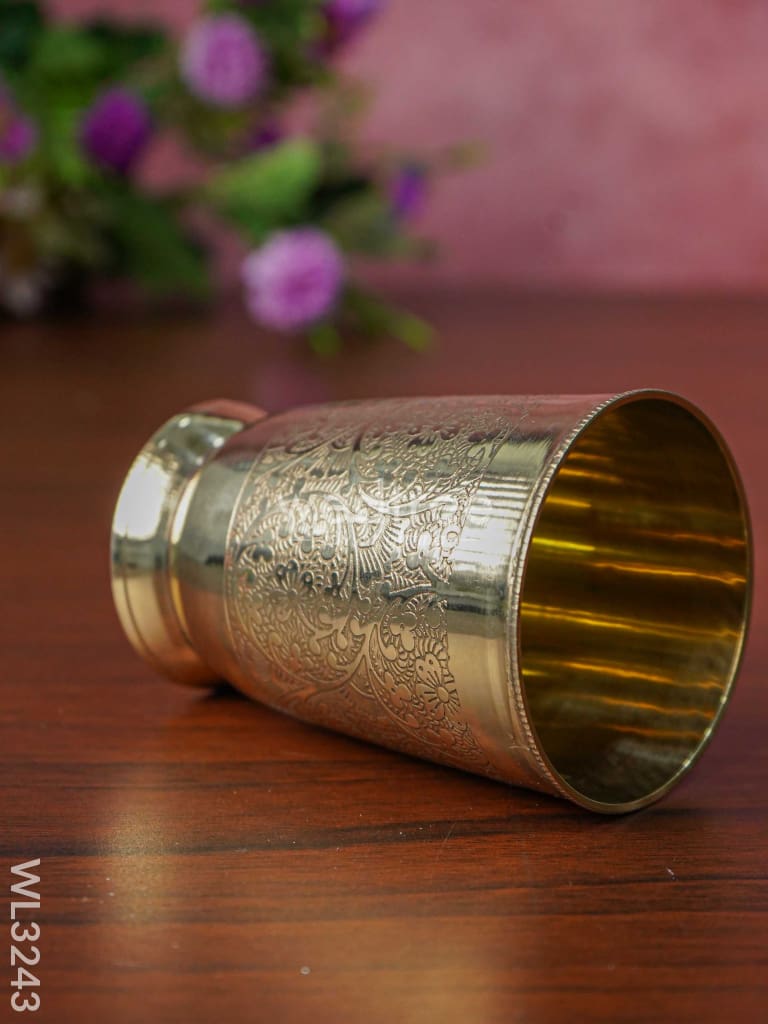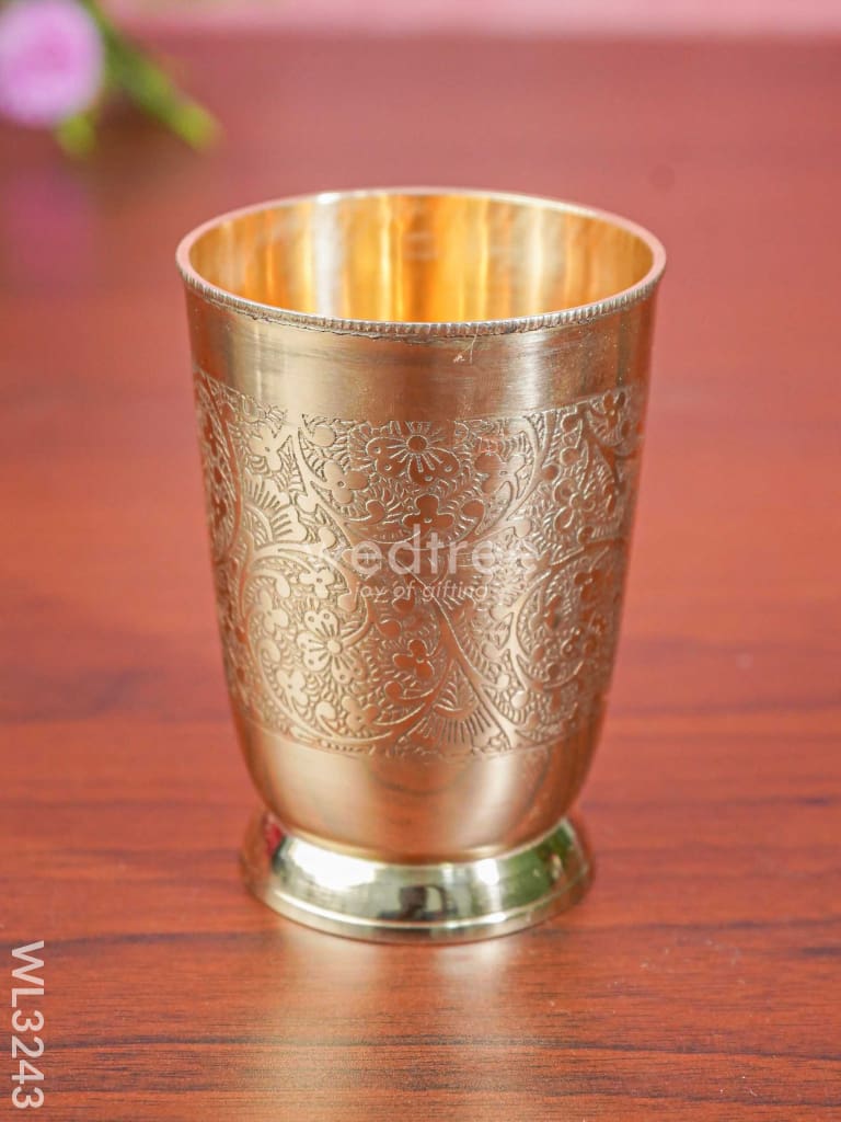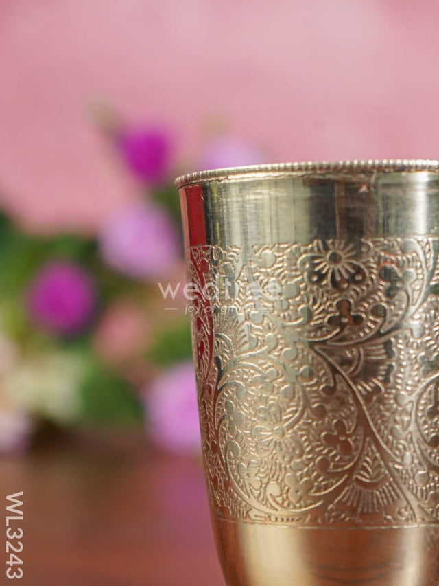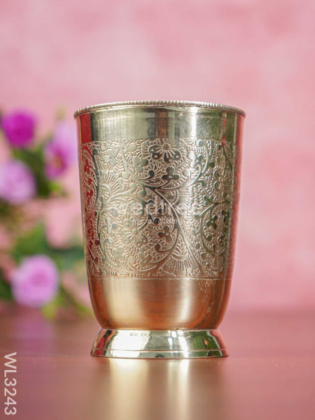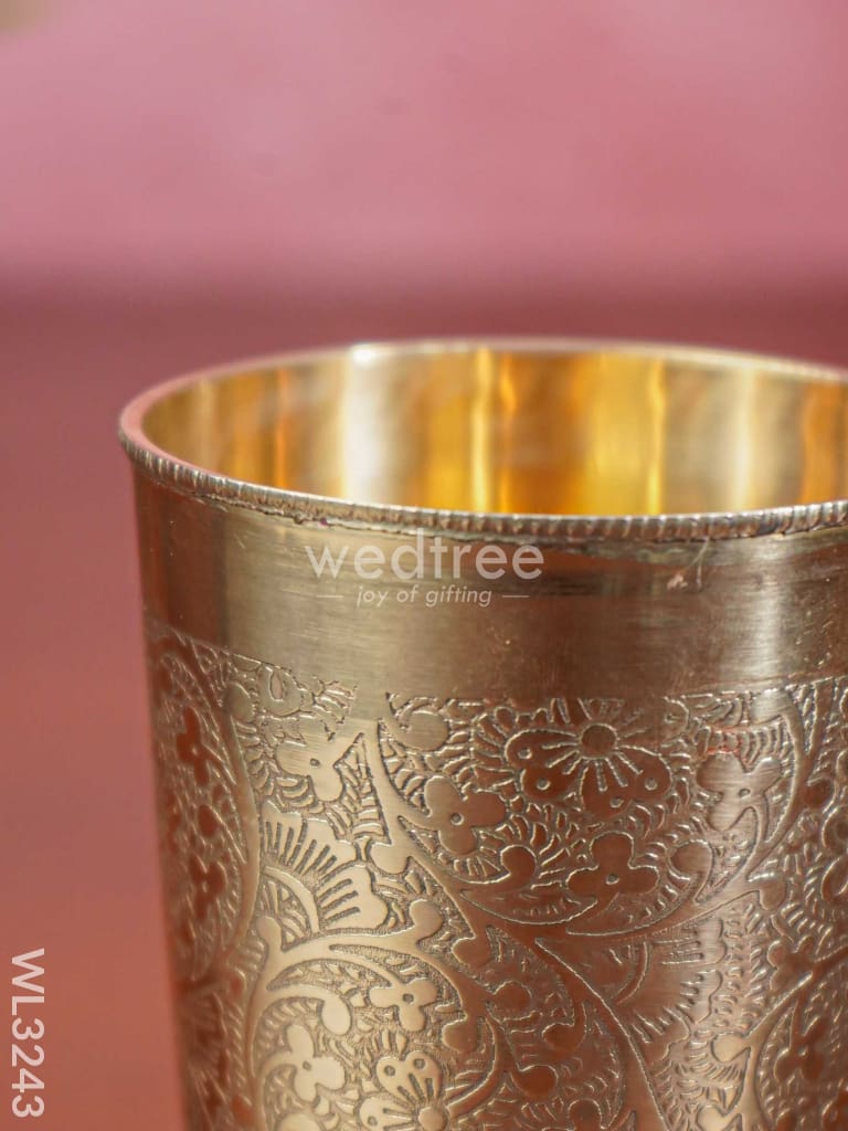 - Very elegant-looking glass made of brass, is engraved with beautiful floral patterns.