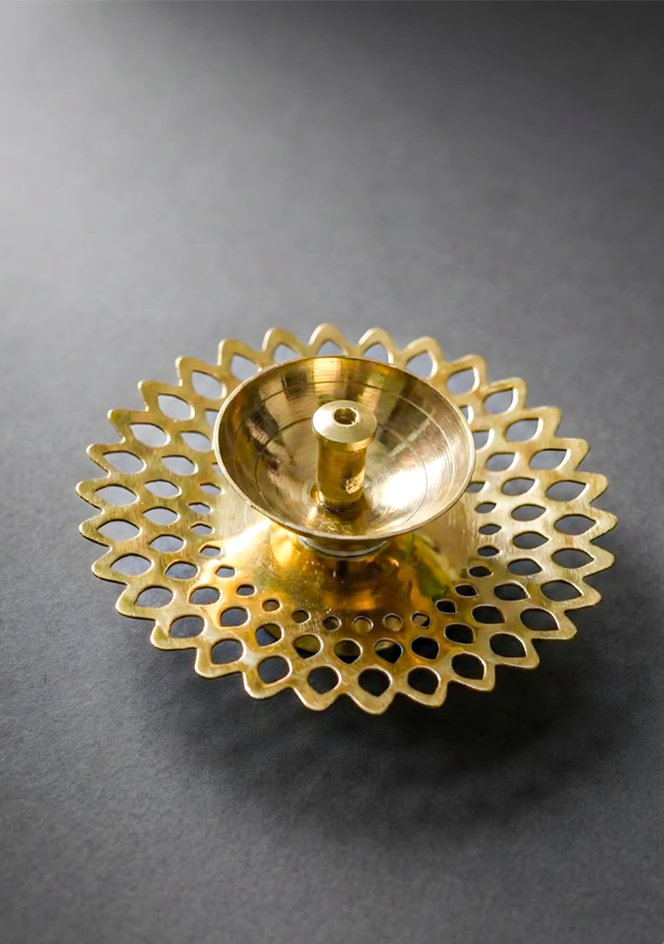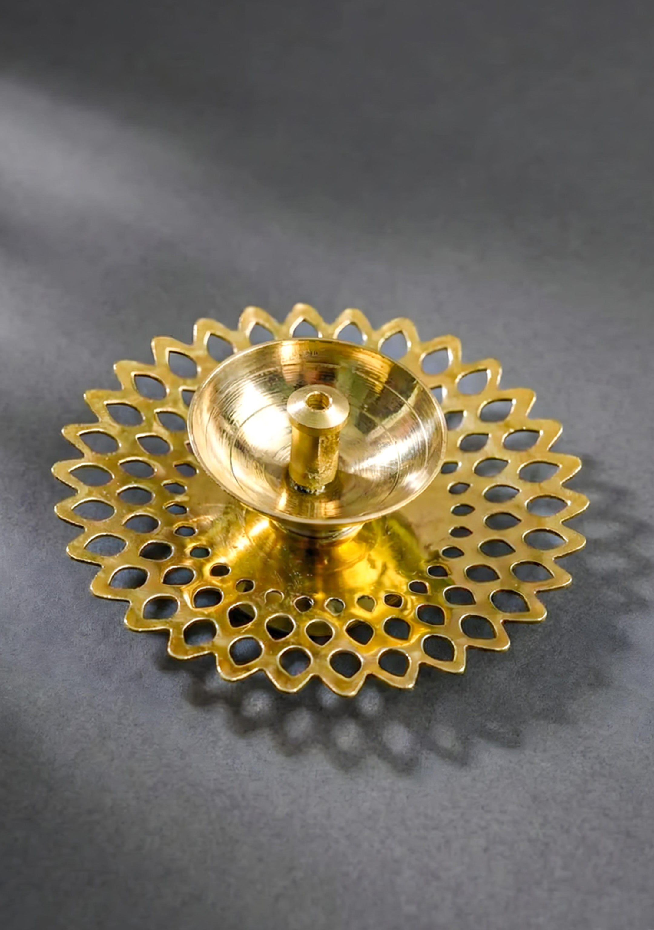 Brass Jhaali Sunflower Shaped Diya - WBG0038