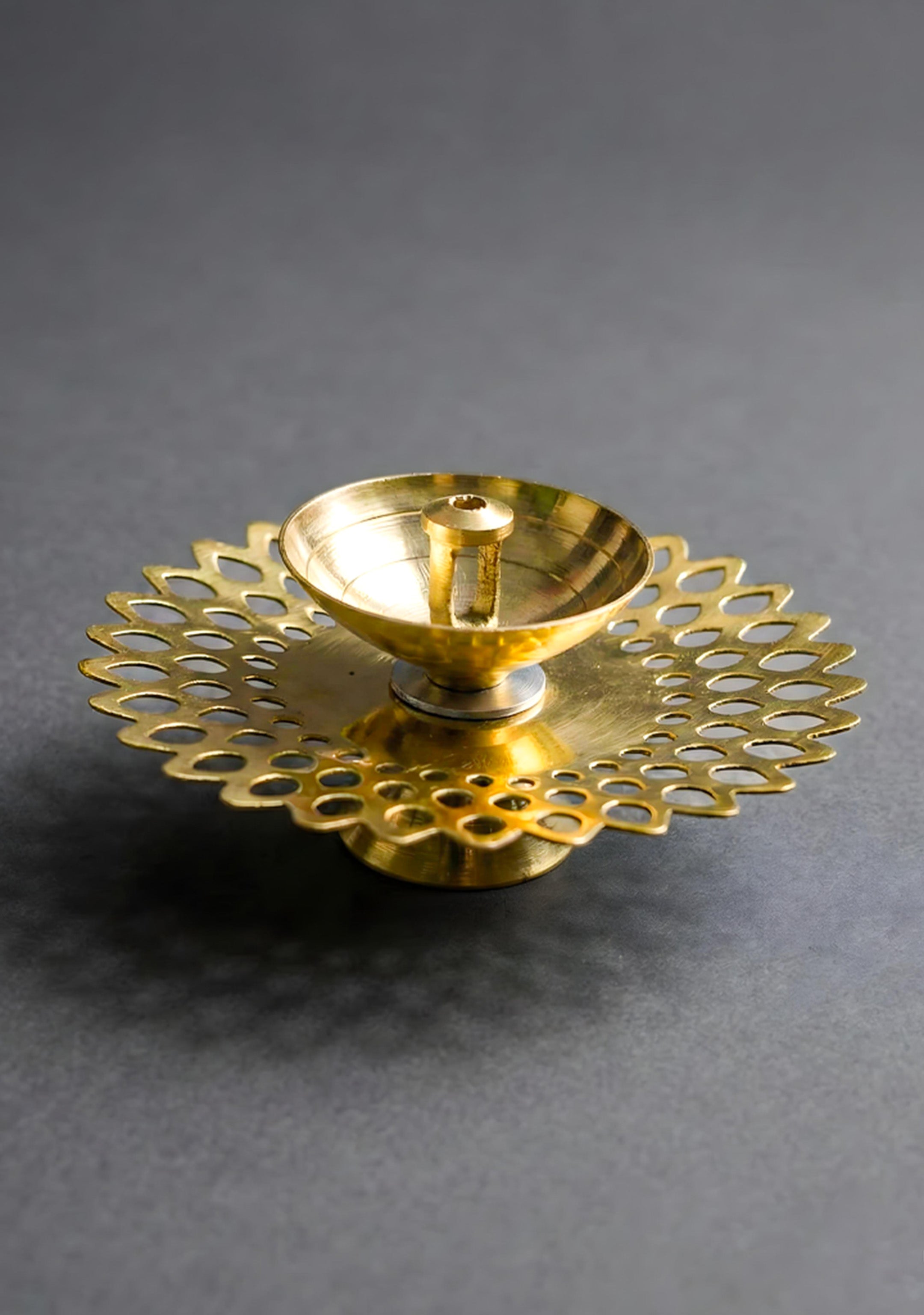 - The diya is fitted with a sunflower design pierced base making it more attractive.