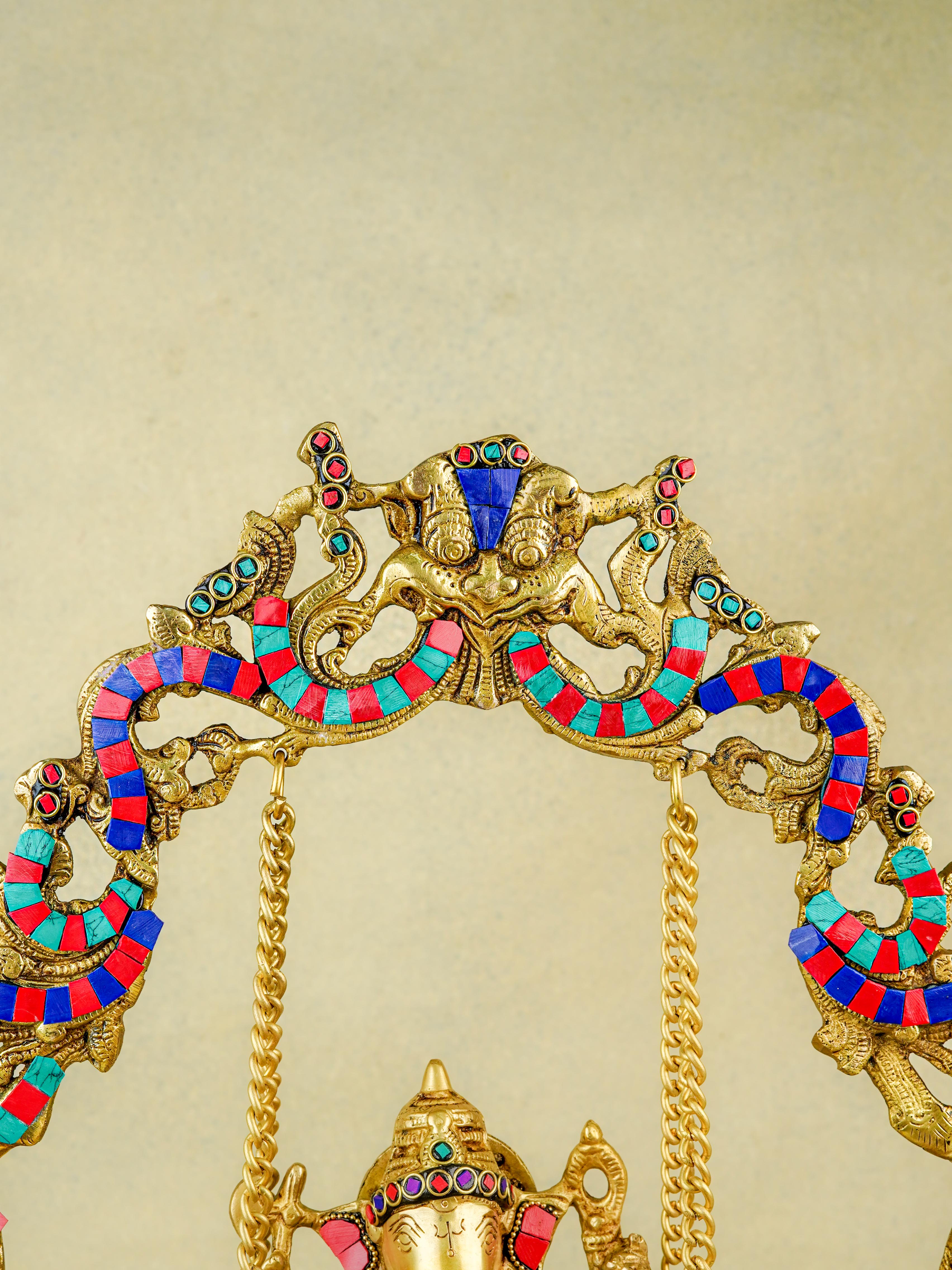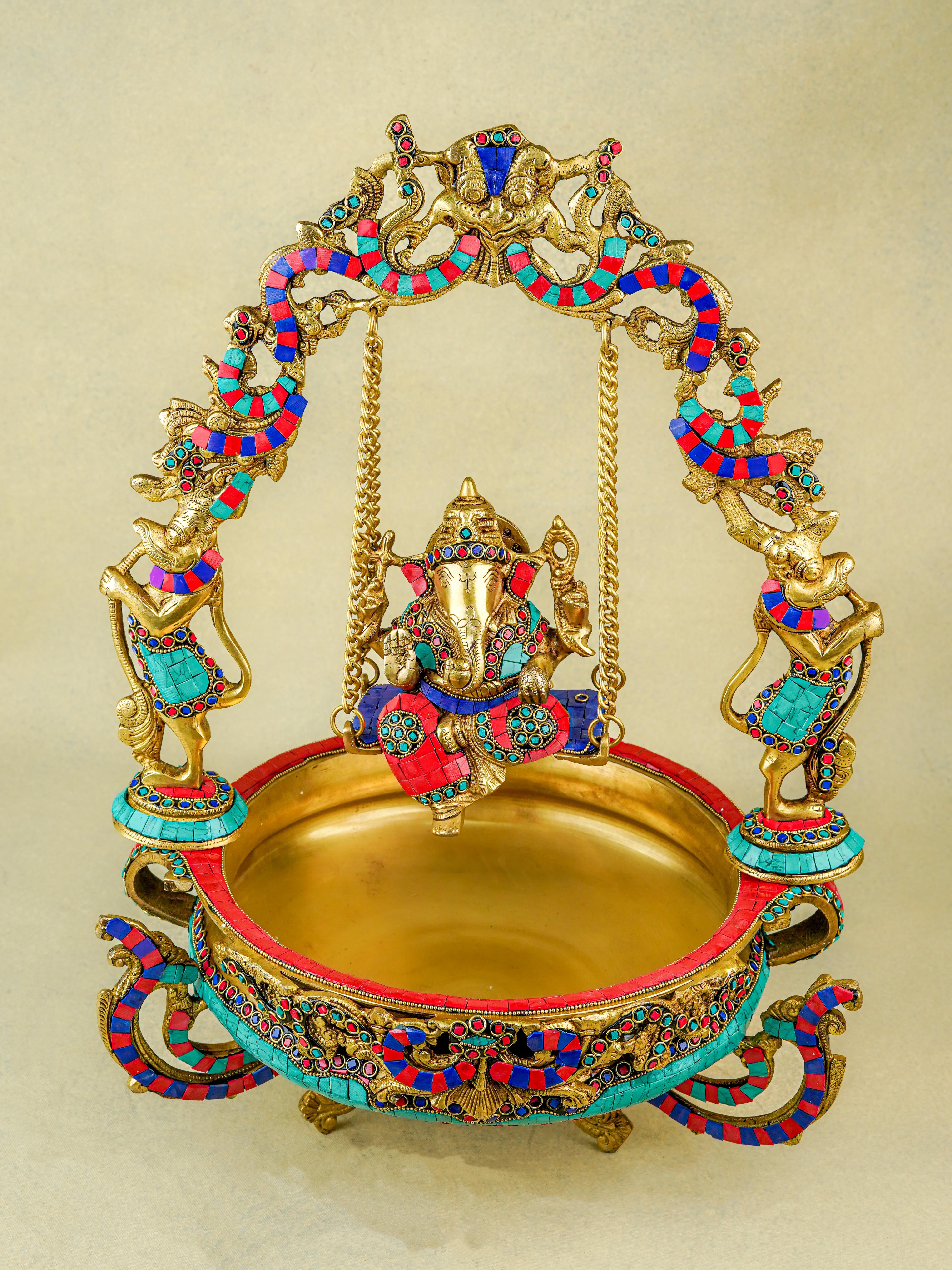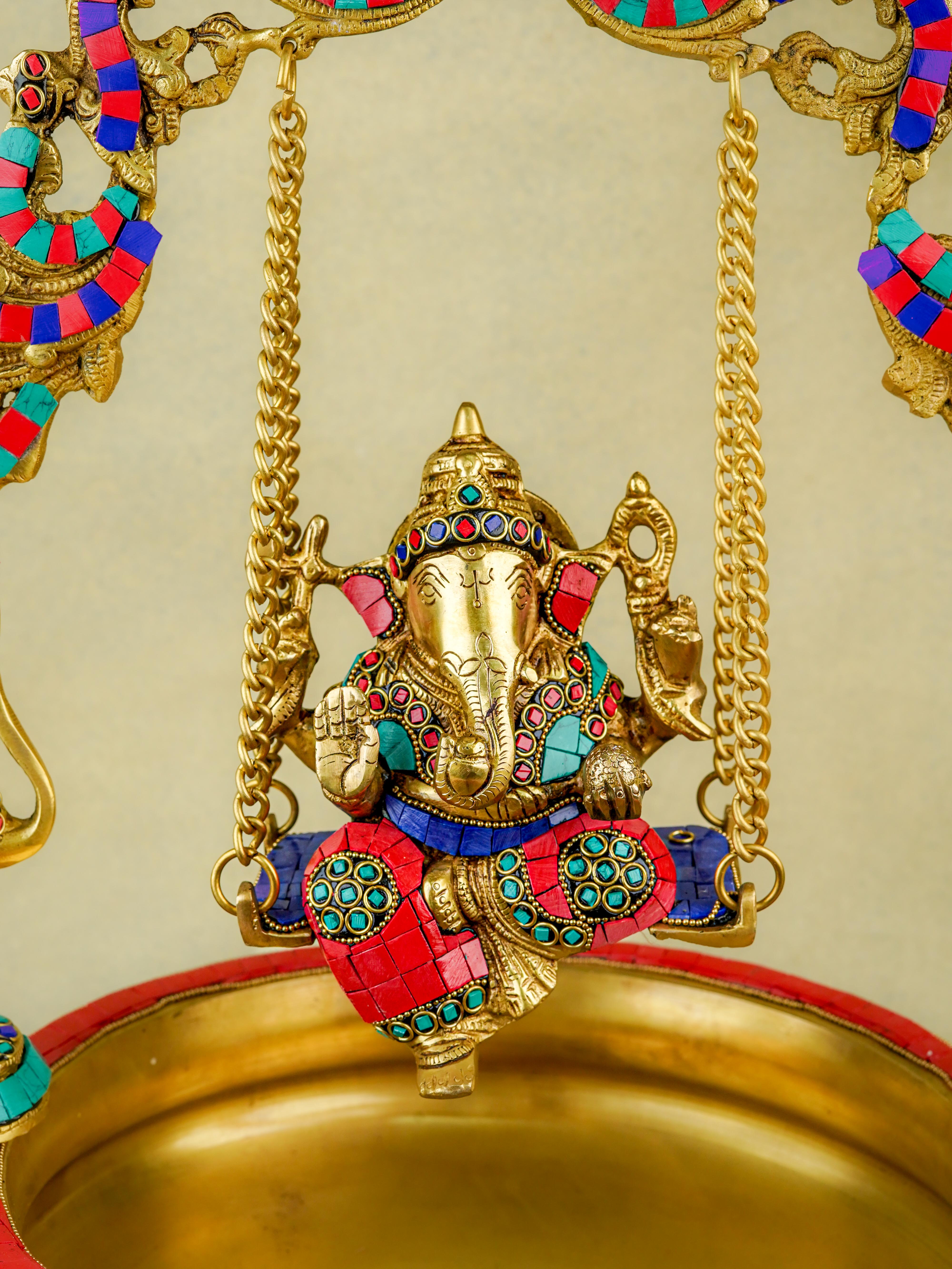 Brass Jhoola Ganesha with Urli Stonework - 21 inch - WL5667